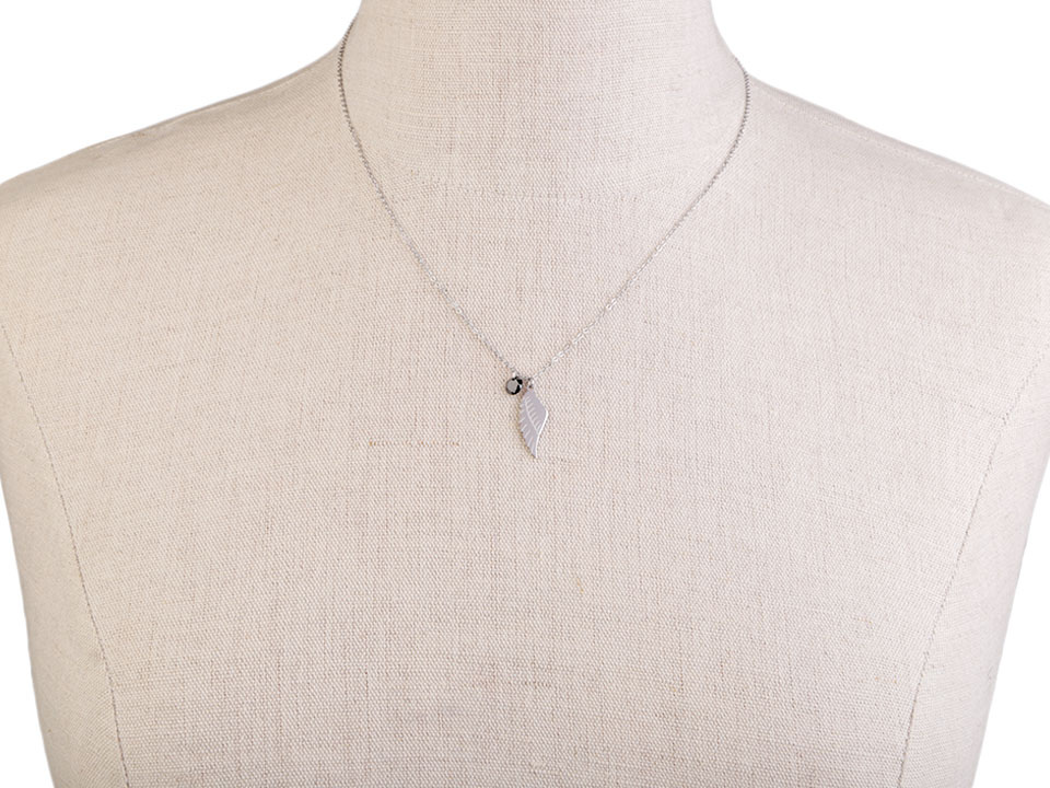 Náhrdelník č.4 - křídlo - má vsazený broušený kamínek barvy crystal, rozměry přívěsku jsou 0,8 x 1,8 cm.
