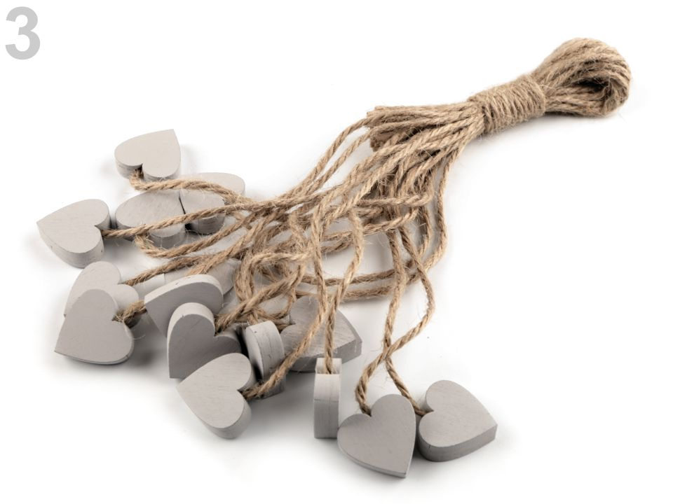Vintage srdce je vyrobené ze dřeva a je k němu připevněný jutový provázek. Srdíčka nejsou lakovaná, dá se na ně psát nebo kreslit. Jsou vhodná na ozdobení láhví, dárků, věnců a dalších dekorací. Prakticky je můžete pověsit kamkoliv. Vyniknou také jako svatební dekorace.