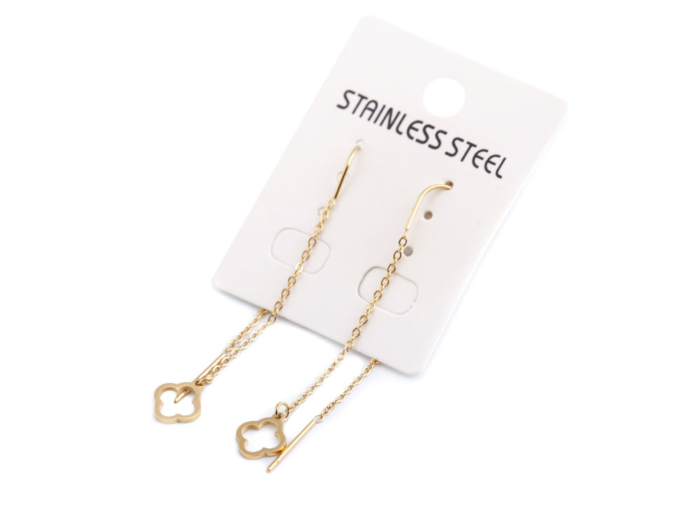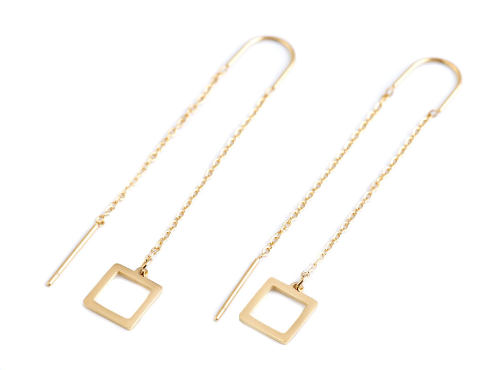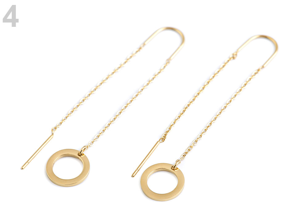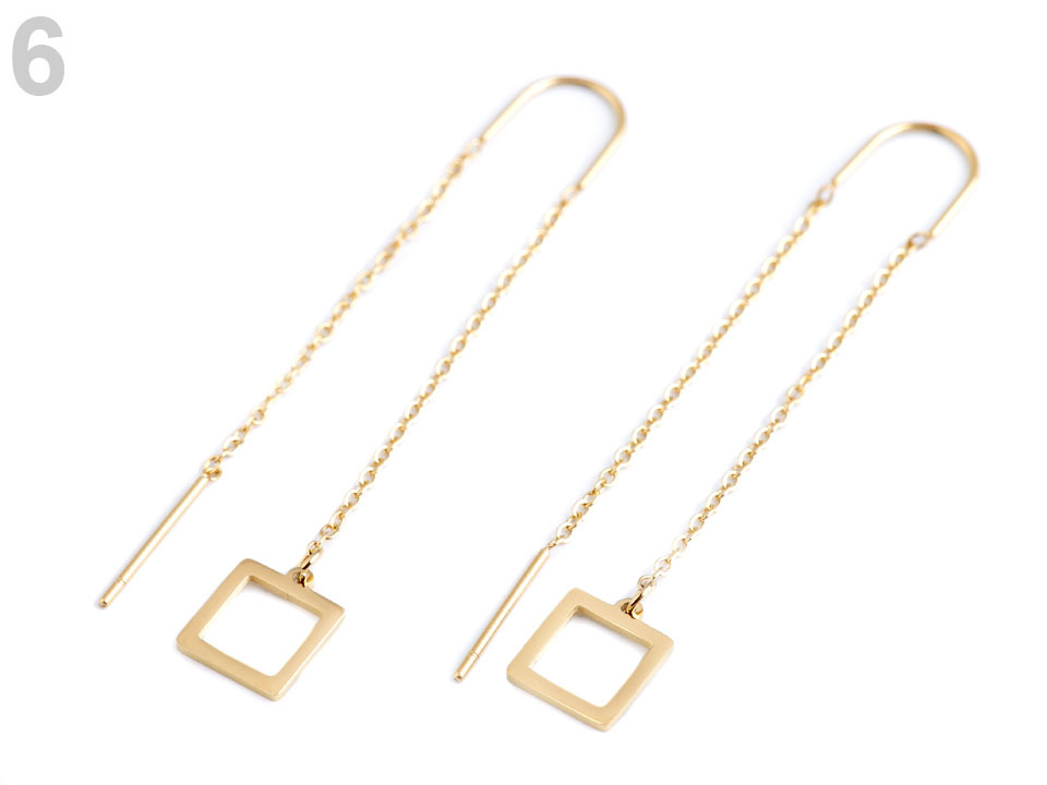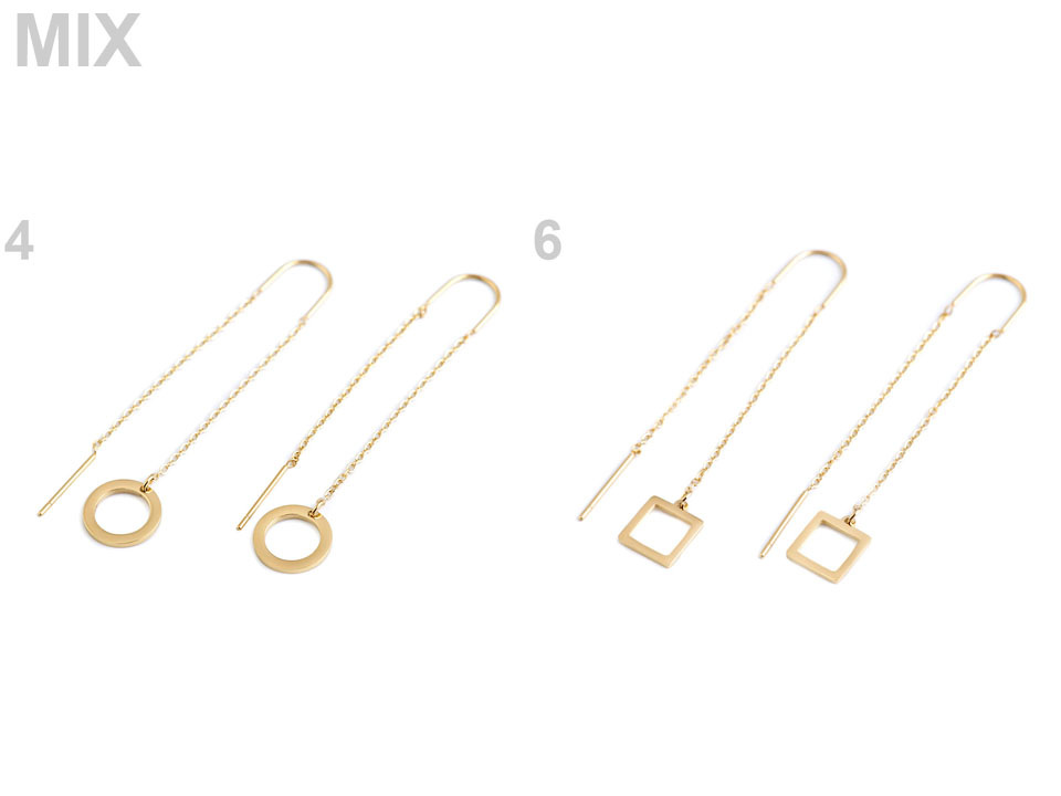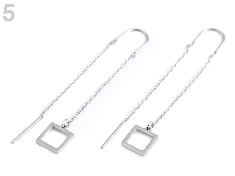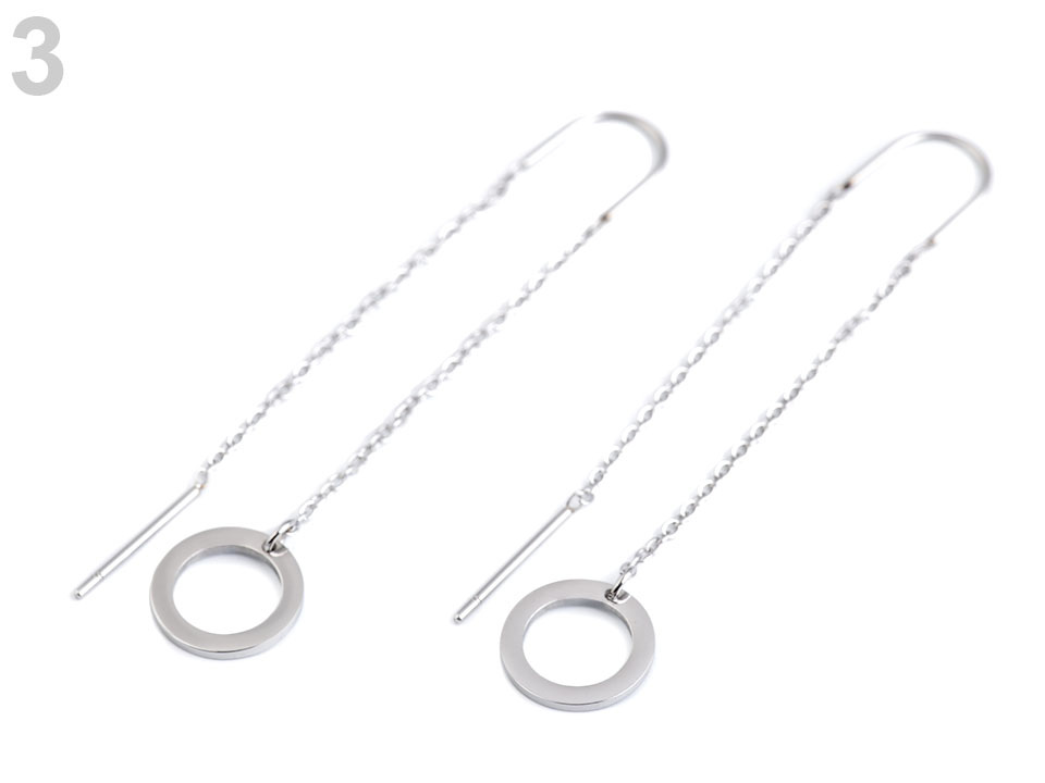 Efektní provlékací náušnice z kvalitní nerezové oceli protáhnou a zeštíhlí linii šíje. Působí velice mladistvě a žensky. Ozdoby na konci řetízku mají vysoký zrcadlový lesk.