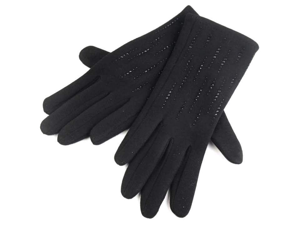 Dámské rukavice jsou vyrobené z teplého pružného úpletu, který se ruce skvěle přizpůsobí. Eleganci jim přídávají kamínky různých velikostí, které se krásně lesknou. Uvnitř je jemný kožíšek, jenž je velice příjemný na dotek.
