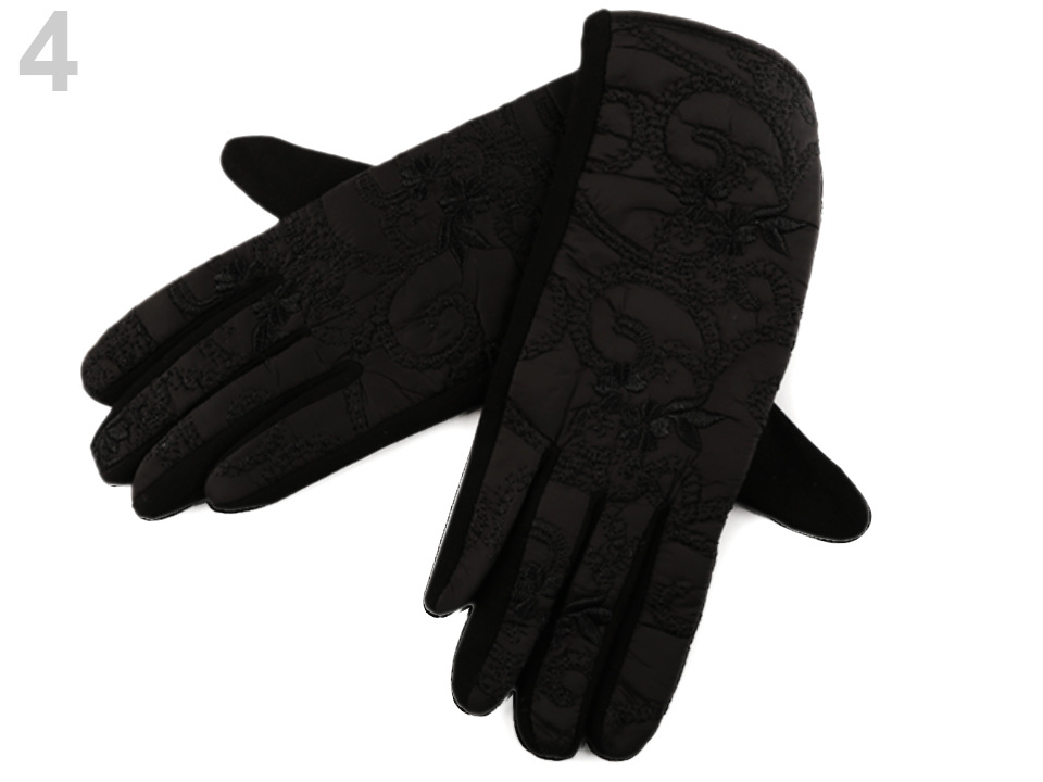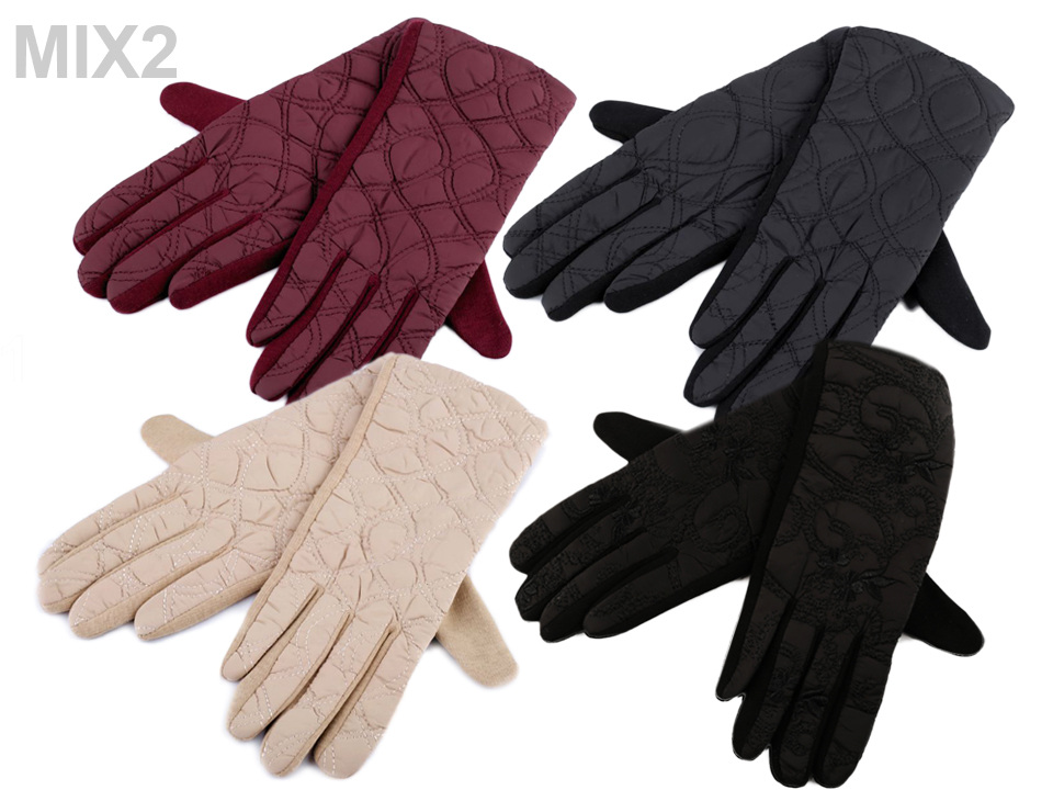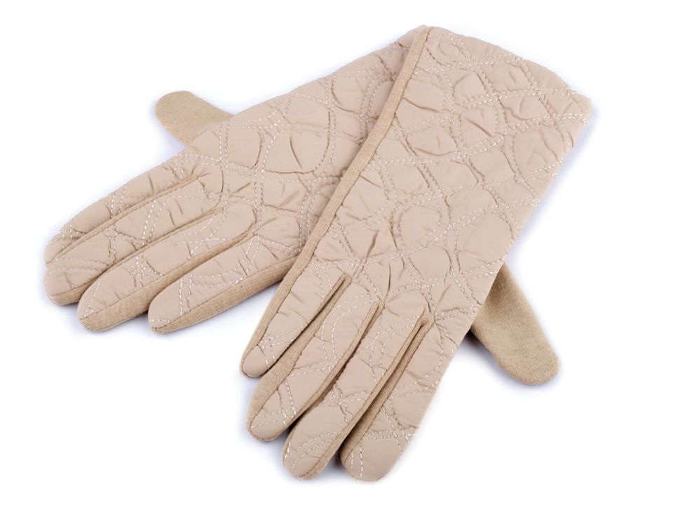 Dámské rukavice jsou vyrobené z teplého pružného úpletu, který se ruce skvěle přizpůsobí. Přední díl zdobí přošívání, které působí jako elegantní krajka.