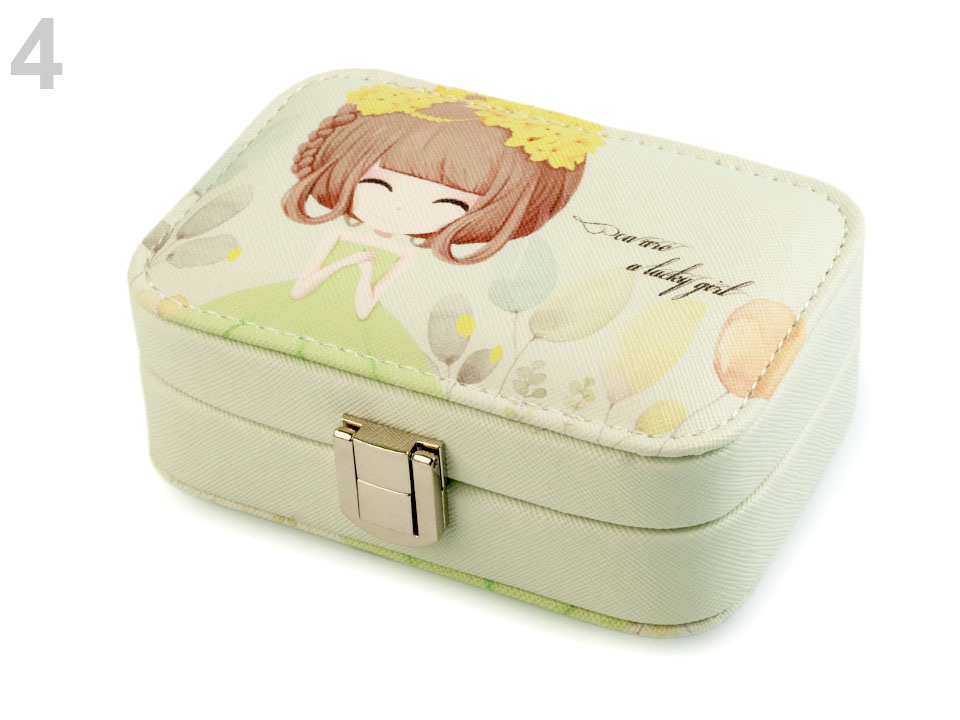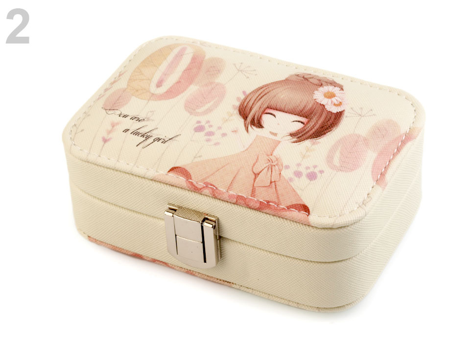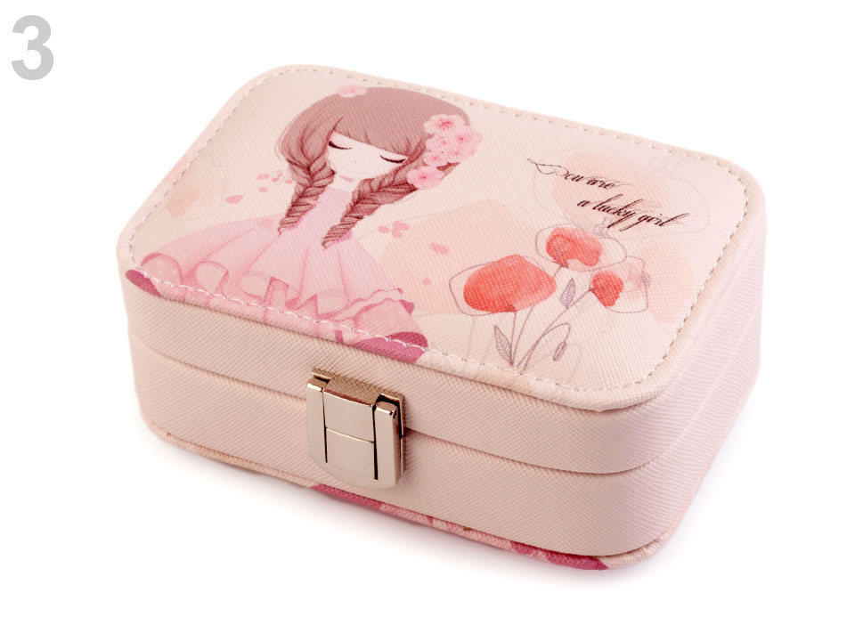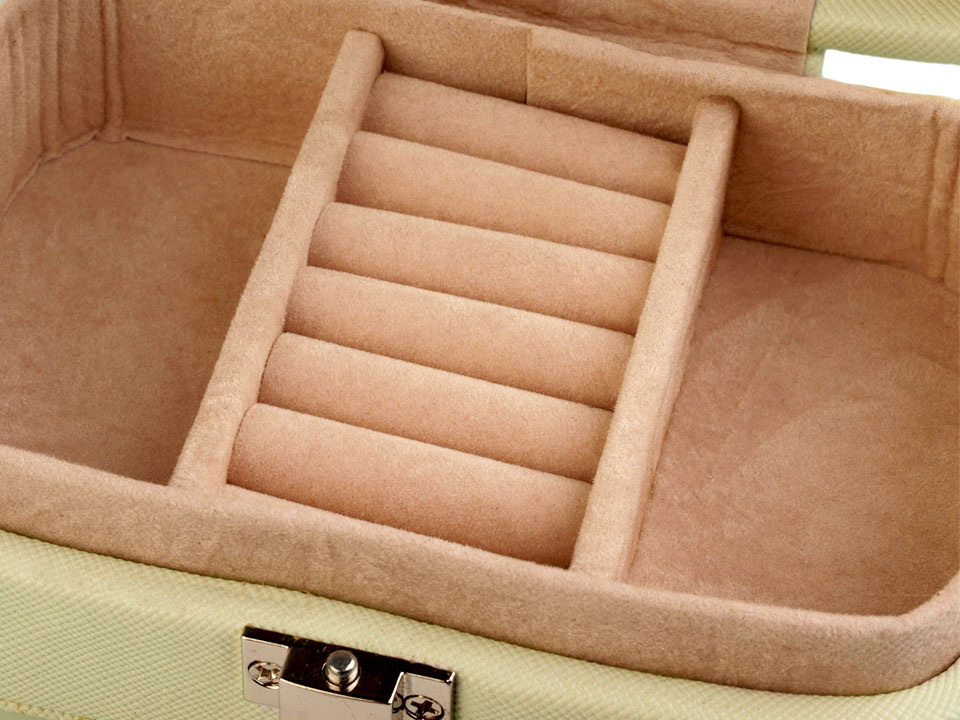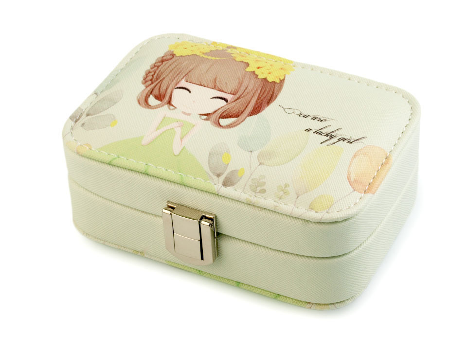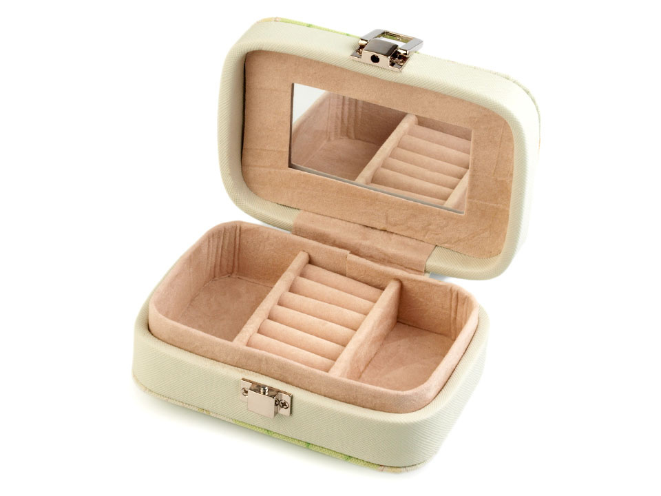 Malá šperkovnice je vyrobená z kvalitní eko kůže. Má kovové zapínání. Spolehlivě ochrání šperky před nepříznivými vlivy okolí jako je světlo nebo vlhkost. Uvnitř šperkovnice jsou 2 přihrádky, oddíl na prsteny a zrcátko. Šperkovnice má velice kvalitní a precizní provedení.