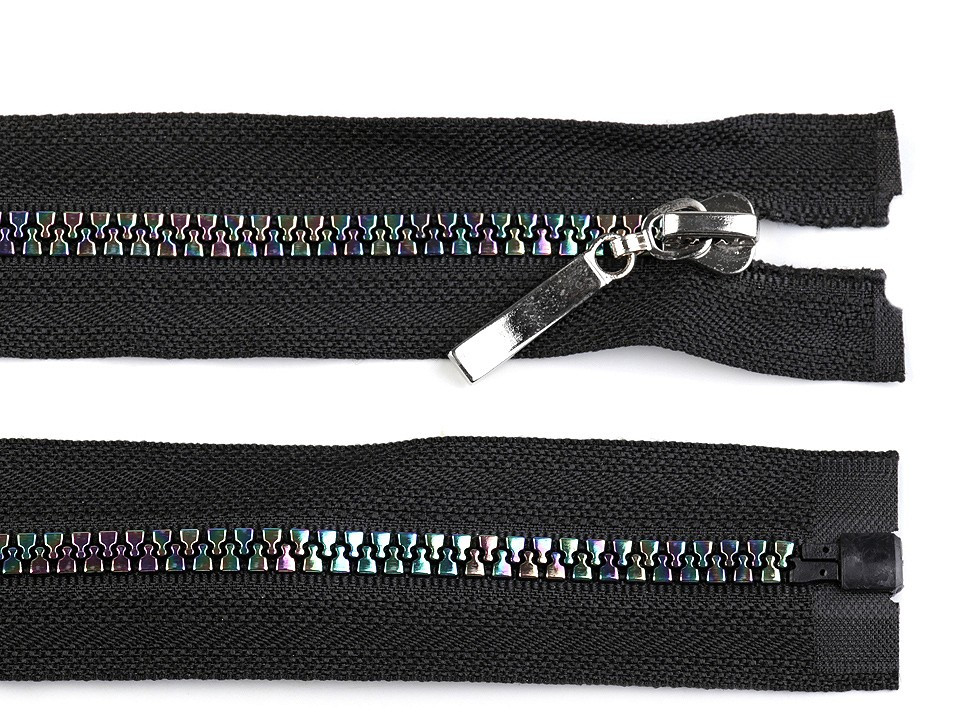 Dělitelný kostěný zip vás zaujme svým duhovým efektem, který povýší vaše oblečení na nevšední. Zip využijete na bundy, mikiny, svetry, apod.