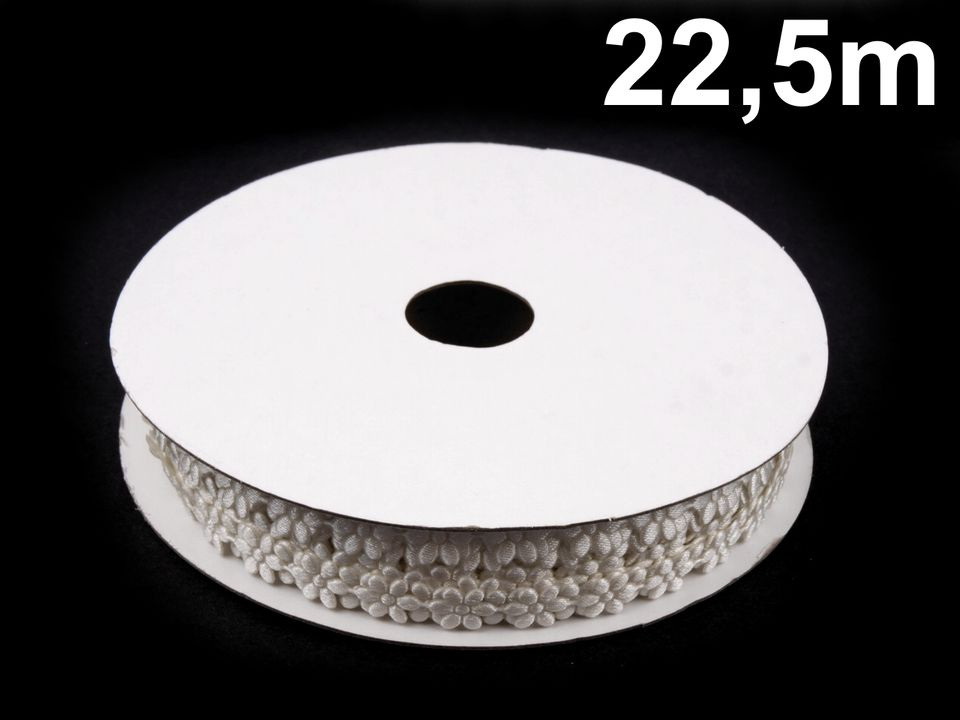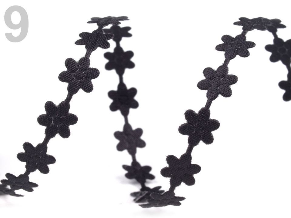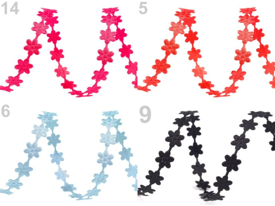 Použití: Jednotlivé květy můžete z prýmku vystřihnout a využít u scrapbookingu, vytvoříte si tak originální fotoalba, přáníčka, jmenovky nebo deníky. Prýmek lze také našít na jakékoliv oblečení, dečky, polštáře nebo karnevalové kostýmy.