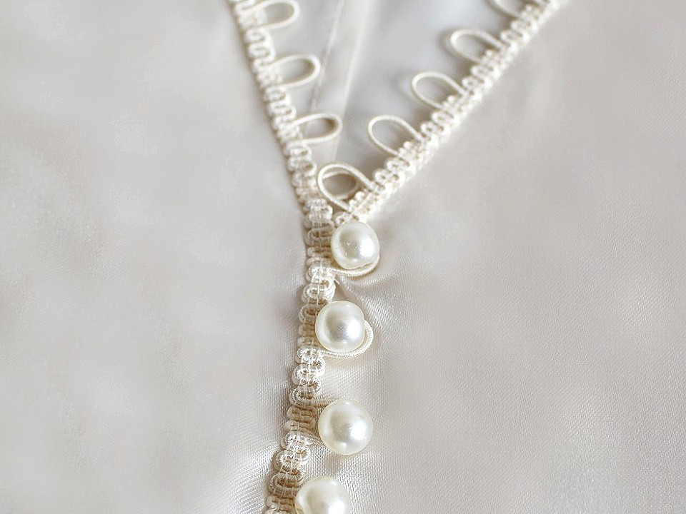Použití: Prýmek je vhodný na svatební i společenské šaty, halenky, svetry apod.