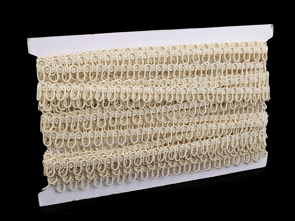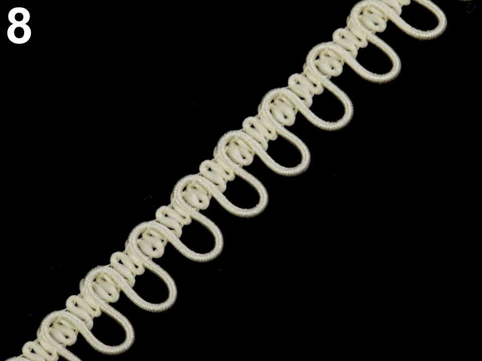 Prýmek č. 1 a 2 má menší očka, která jsou vhodná na perlové knoflíky o velikosti 8 mm, 9 mm, 10 mm.