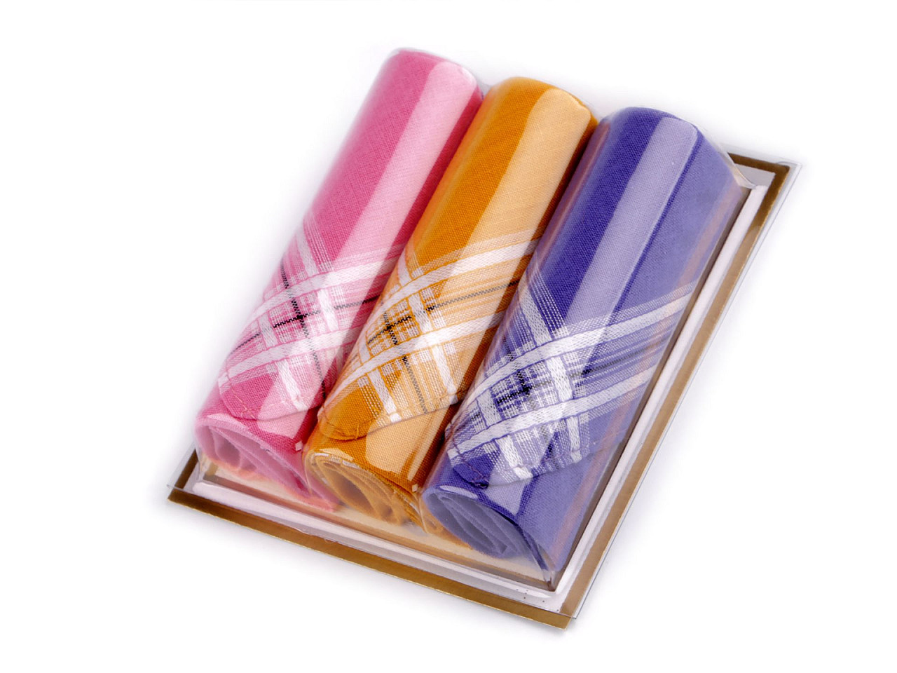 Sada kapesníků je univerzálním a praktickým dárkem. Potřebujete-li malý dárek, který udělá radost, tato sada je tou pravou volbou. Kapesníky jsou zabalené v malé krabičce s průhledem. V jedné krabičce jsou 3 čtvercové kapesníky.