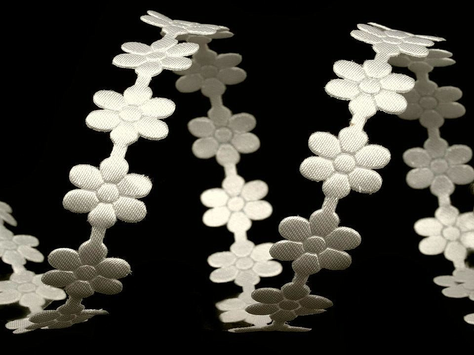 Saténový prýmek šíře 10 mm květ - 1 bílá