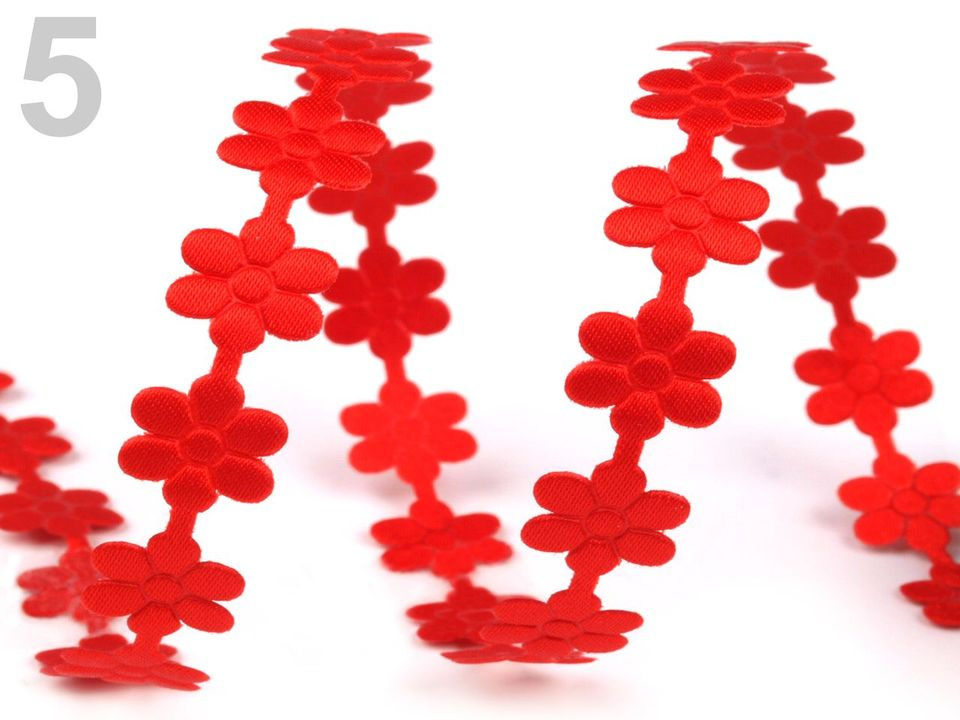 Saténový prýmek šíře 10 mm květ - 5 červená