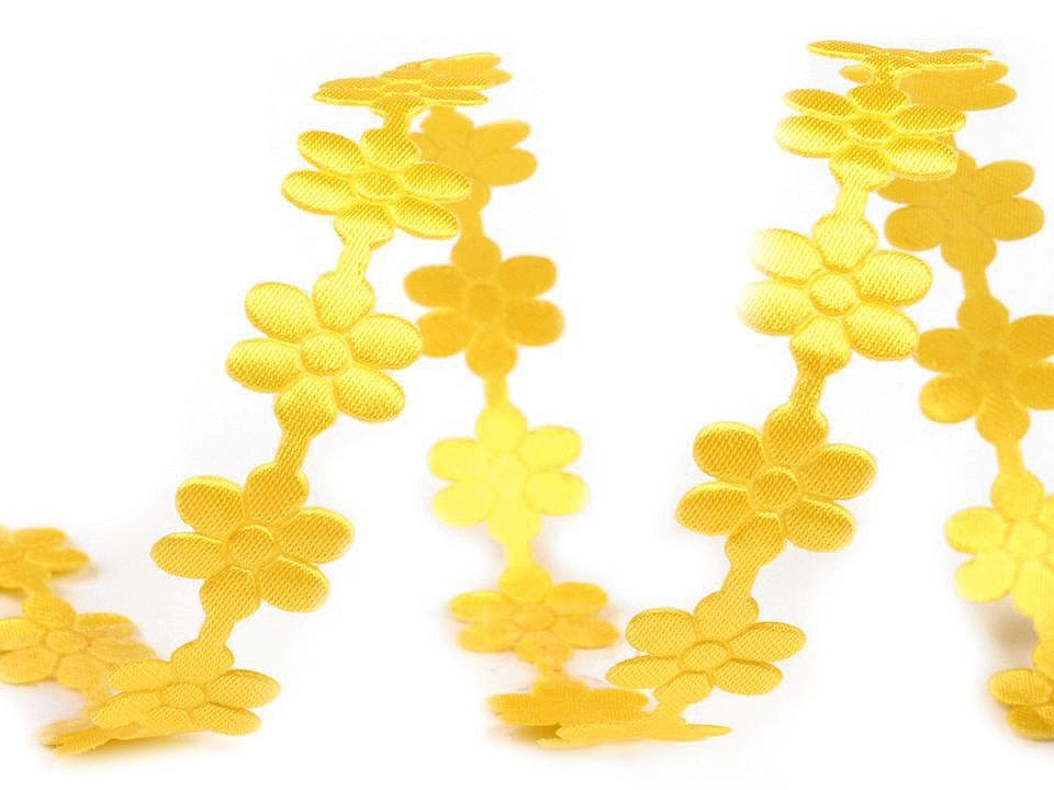 Saténový prýmek šíře 10 mm květ - 8 žlutá
