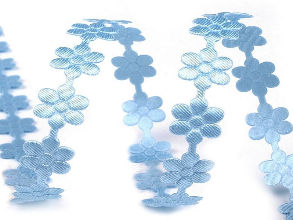 Saténový prýmek šíře 10 mm květ - 6 modrá sv.