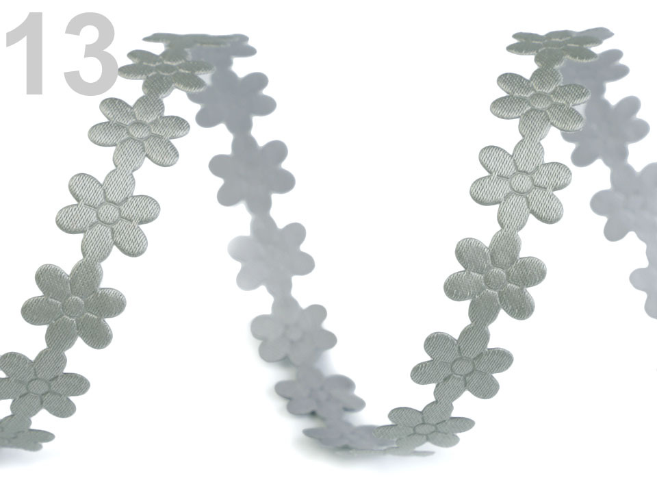 Saténový prýmek šíře 10 mm květ - 13 šedá sv.