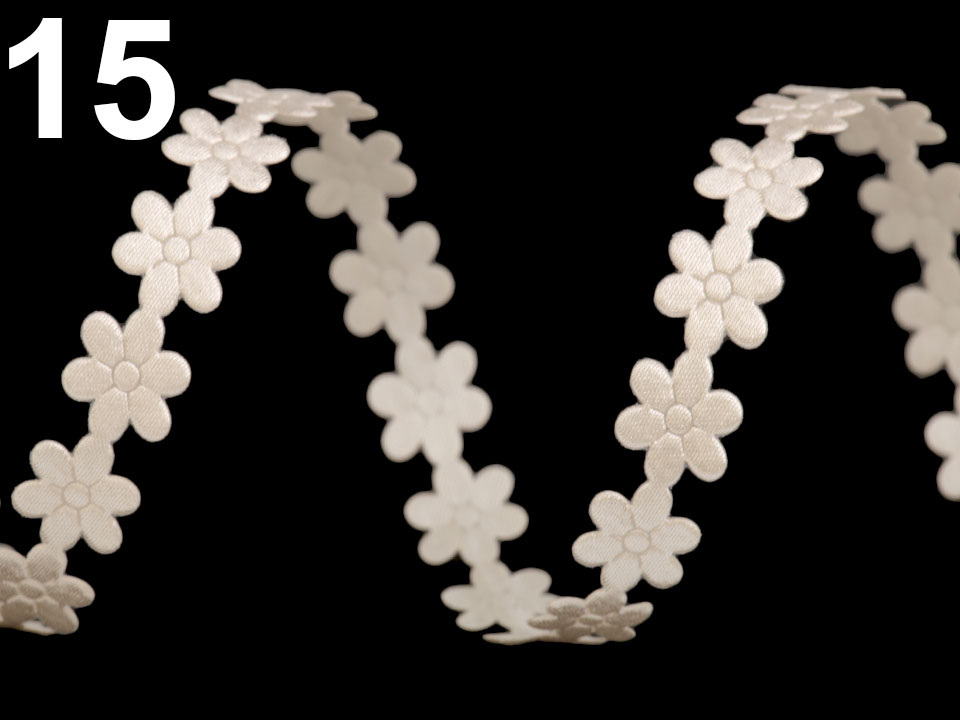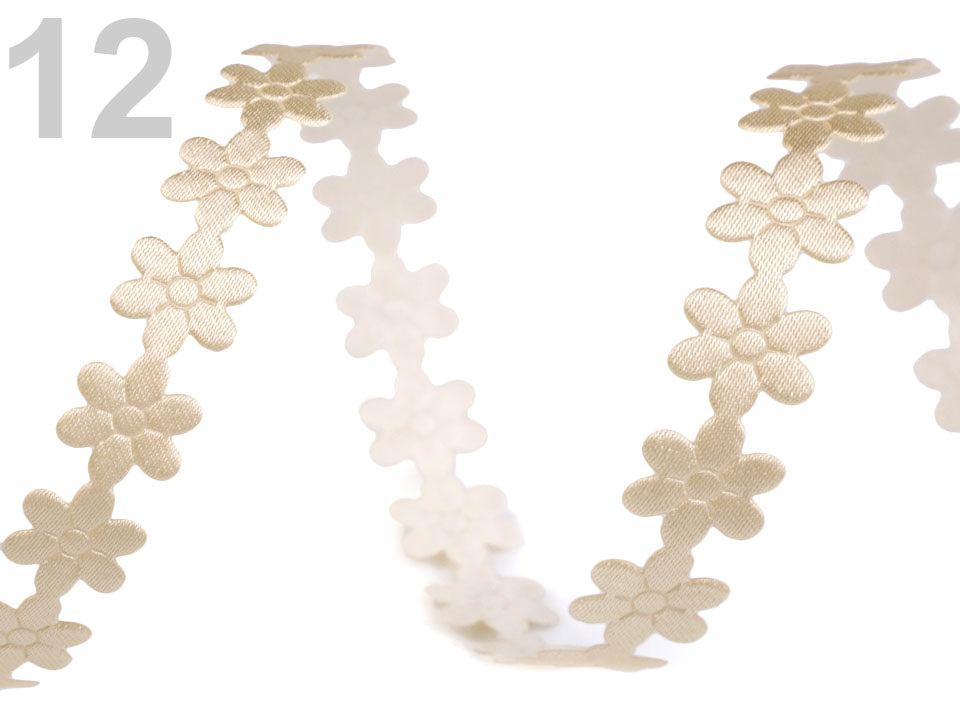 Saténový prýmek šíře 10 mm květ - 12 vanilková