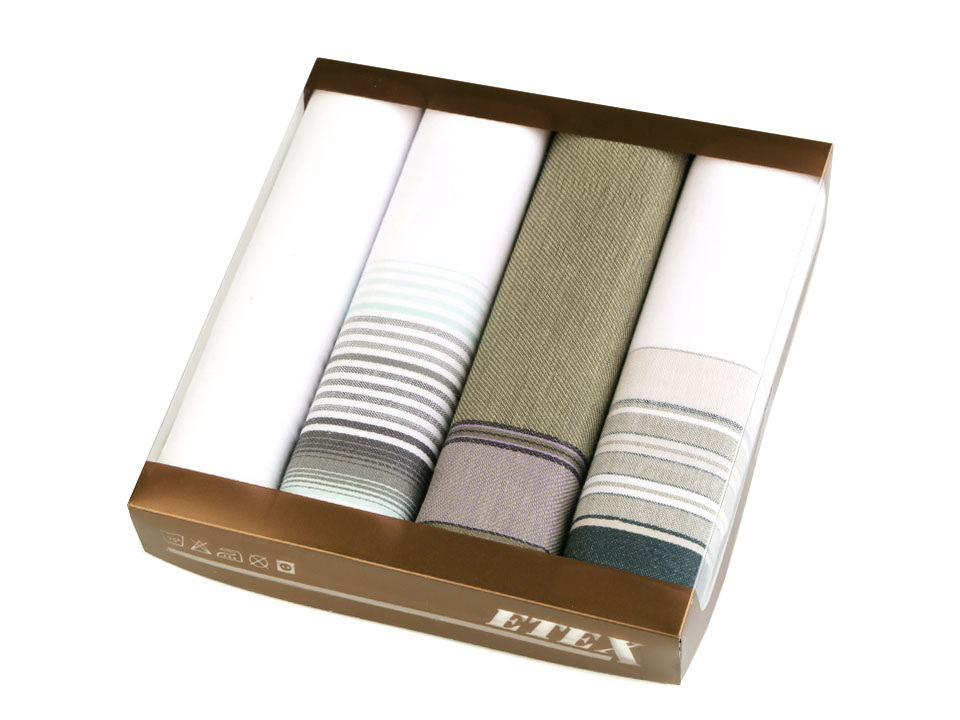 Sada kvalitních bavlněných kapesníků v elegantních barvách, s dezény proužků a kára.