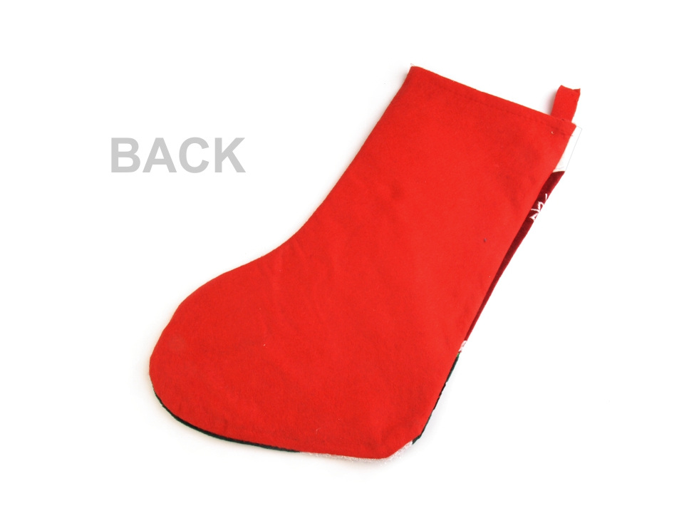 Mikulášská punčocha s vánočním motivem je v typicky vánočních barvách. Je dostatečně velká, aby se do ní vešly veškeré dobroty pro vaše ratolesti. Zadní strana boty je bez dekoru. Díky poutku ji můžete komkoliv zavěsit.