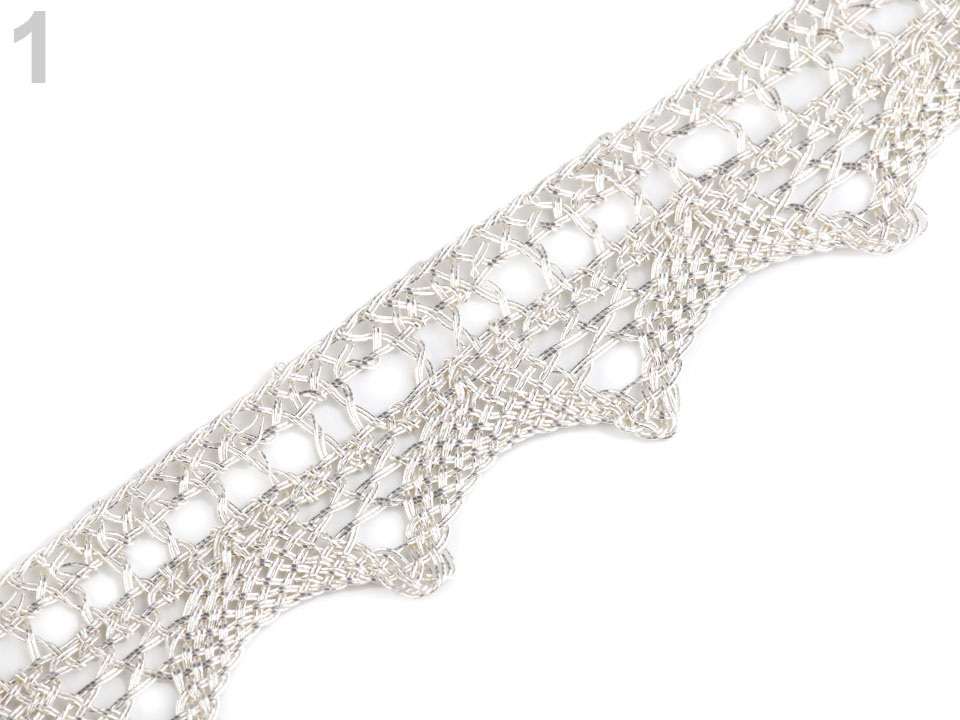 Leonská krajka se díky kovovému vláknu zajímavě třpytí. Je pevná, není pružná.