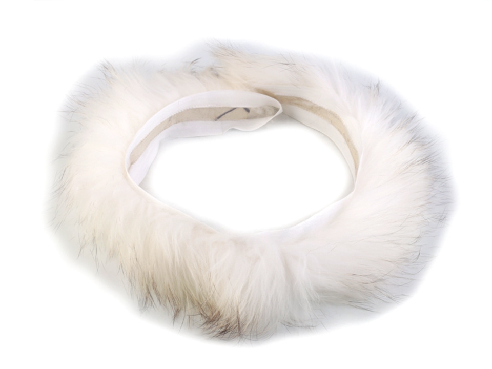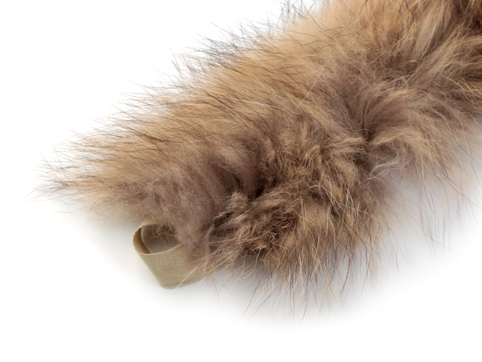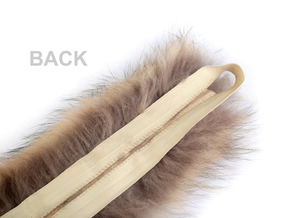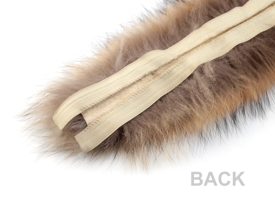 Lem na kapuci z pravé kožešiny z psíka mývalovitého má zajímavé probarvení a delší chlupy.