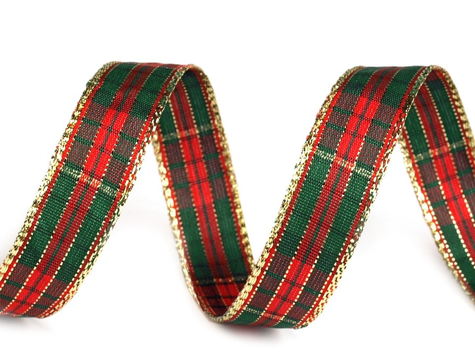 Károvaná stuha se díky lurexu působivě třpytí. Je oboustranná a pevná.