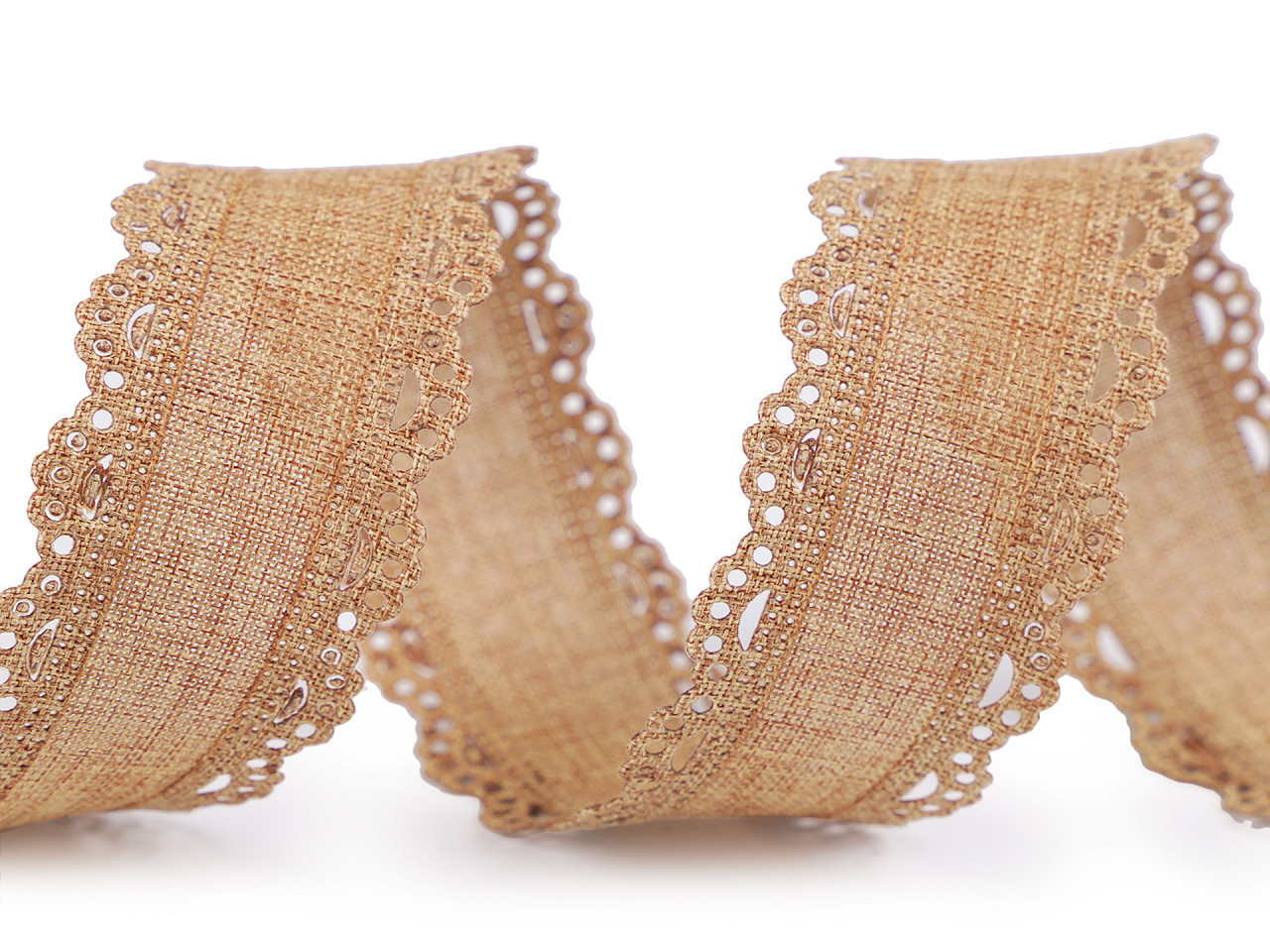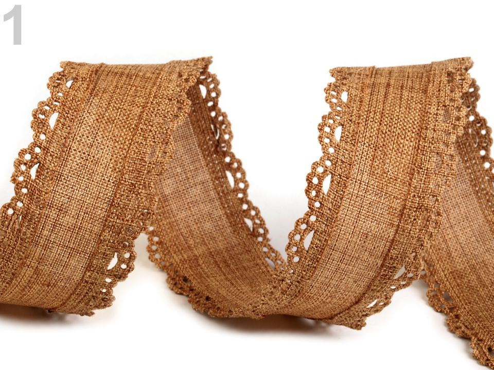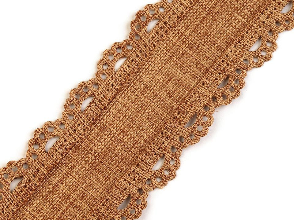 Stuha imitující jutu vás zaujme vysekávaným vzorem po stranách.