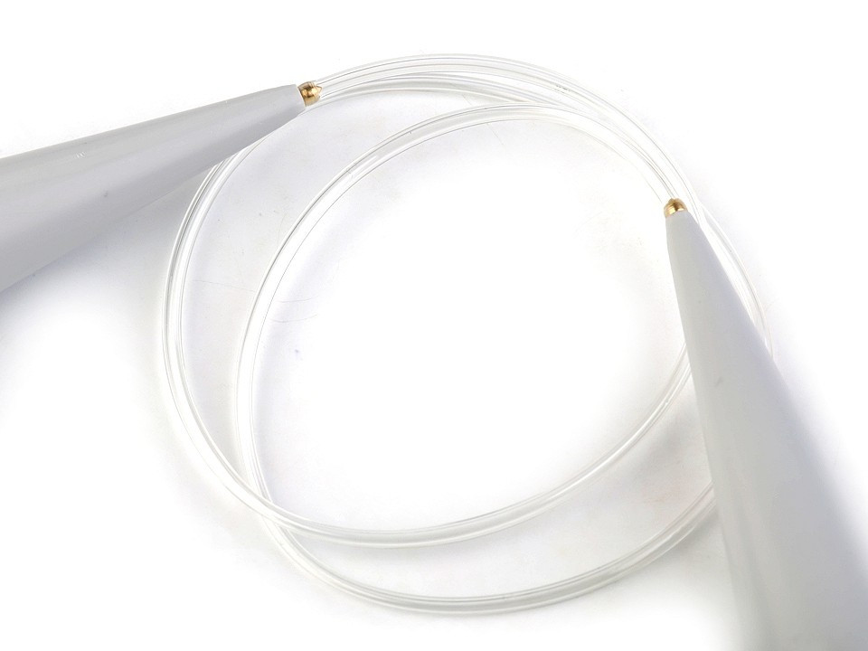 Pletací jehlice jsou spojené plastovým lankem, díky kterému můžete plést dokola bez švů. Jejich velikost je vhodná na silnější přízi. Využijete je k pletení ponožek, nákrčníků, čepic, sukní apod.