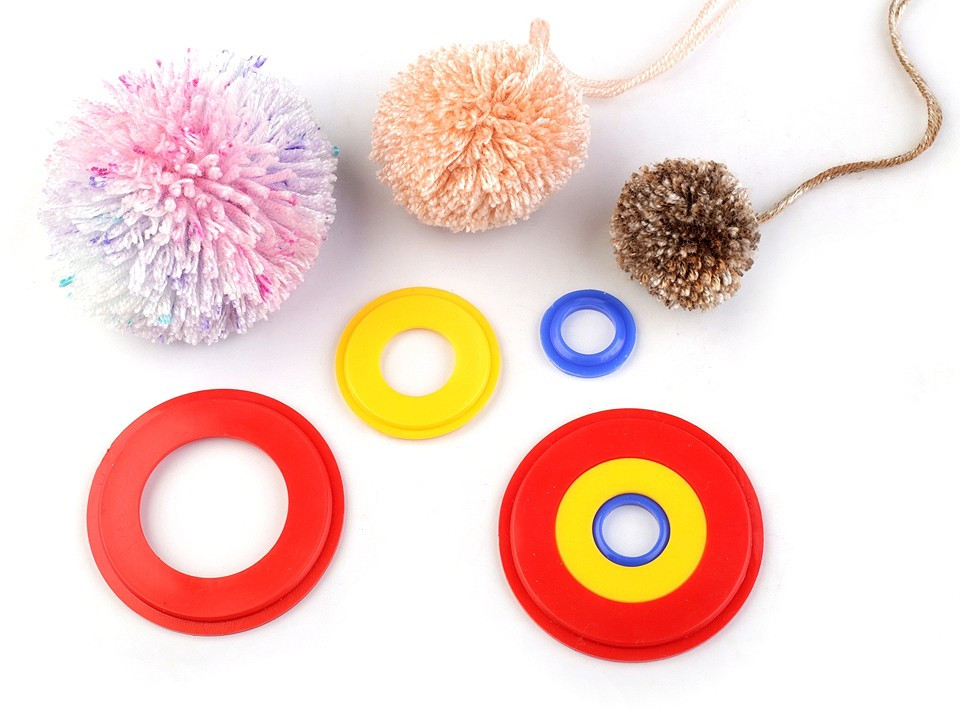 Pomocí barevných kroužků lehce zhotovíte pravidelné bambulky ve 3 velikostech - 2 cm; 3,5 cm a 5,5 cm. Součástí balení je i obrázkový návod na výrobu bambule.
