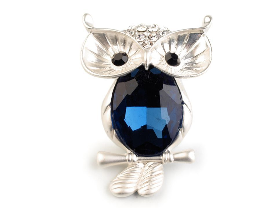 Brož moudré sovy je ozdobená perlou nebo broušeným kamenem.