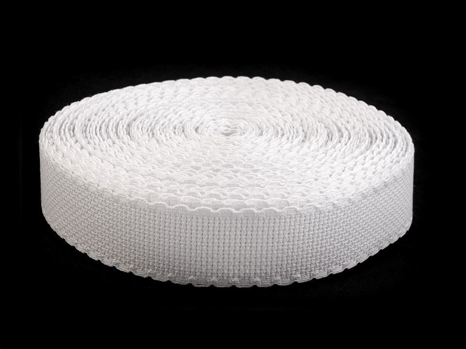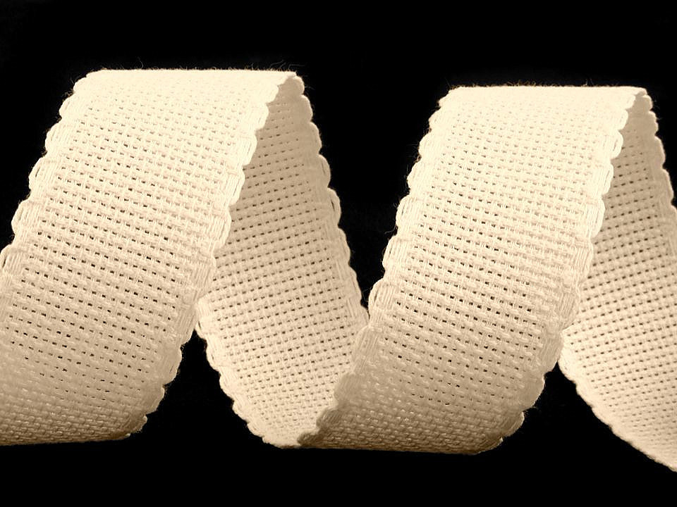 Kanavný pás využijete pro drobné vyšívané práce jako jsou záložky do knih či jemné bytové doplňky, často v rustikálním stylu. Látka má zpevněné okraje, které jsou zdobené zoubkováním. Stačí tedy jen vyšít ornament a máte ozdobu hotovou.