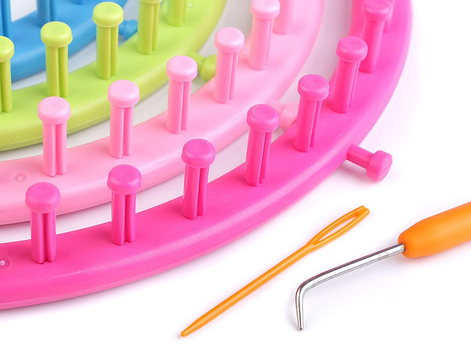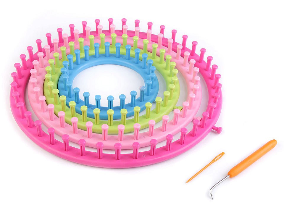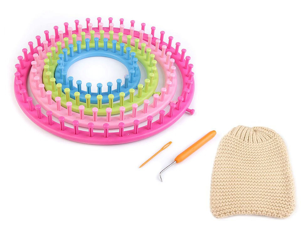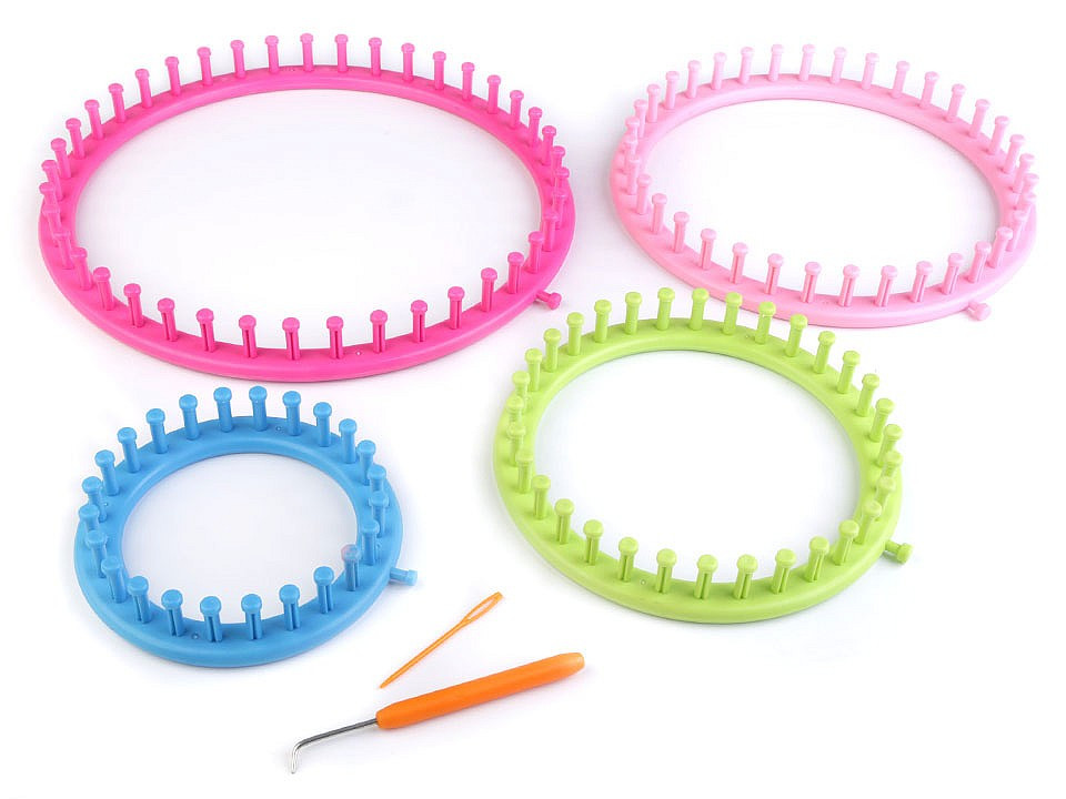 Sada plastových pletacích kruhů vám pomůže snadno a rychle uplést čepice, duté šály, návleky na nohy, tašky a další doplňky.