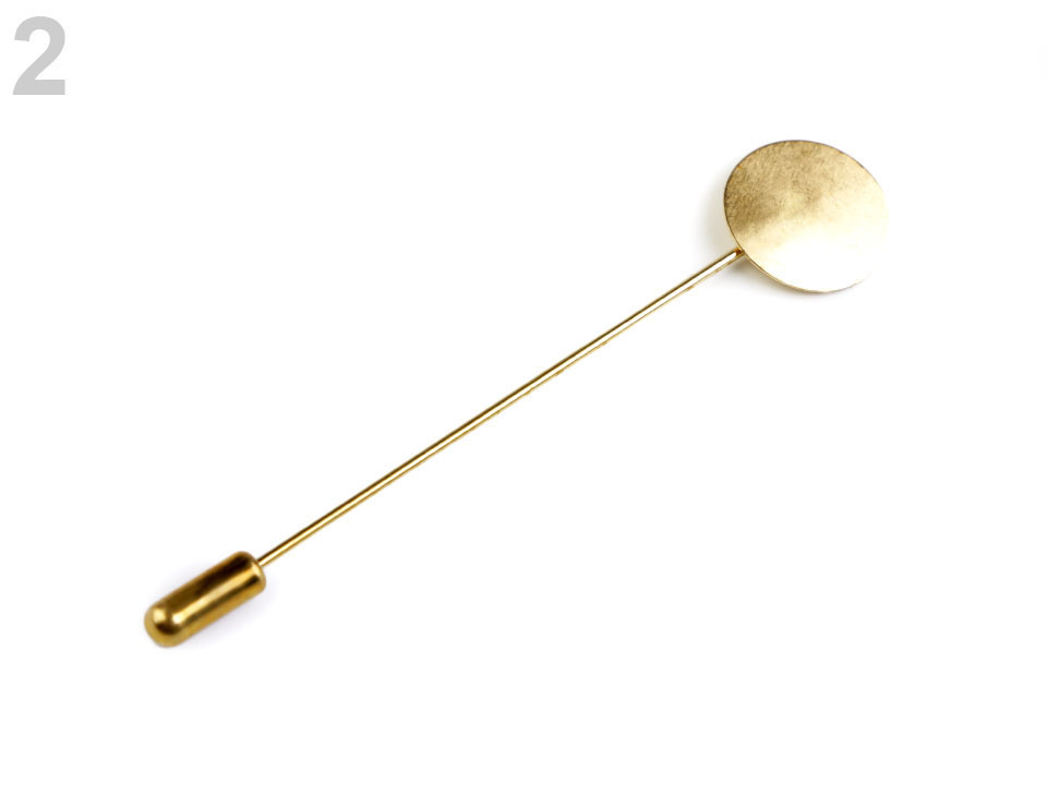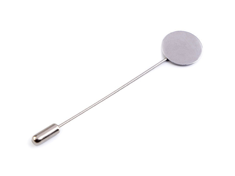 Ozdobný špendlík je polotovar, se kterým si vyrobíte efektní brož. Na plošku můžete nalepit textilní květy, bambulky apod. Její průměr je 15 mm.