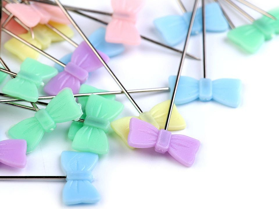 Dekorační špendlík má hlavičku ve tvaru mašličky. Slouží jako ozdoba k upevnění dekorace nebo jako aranžmá do živých květů.