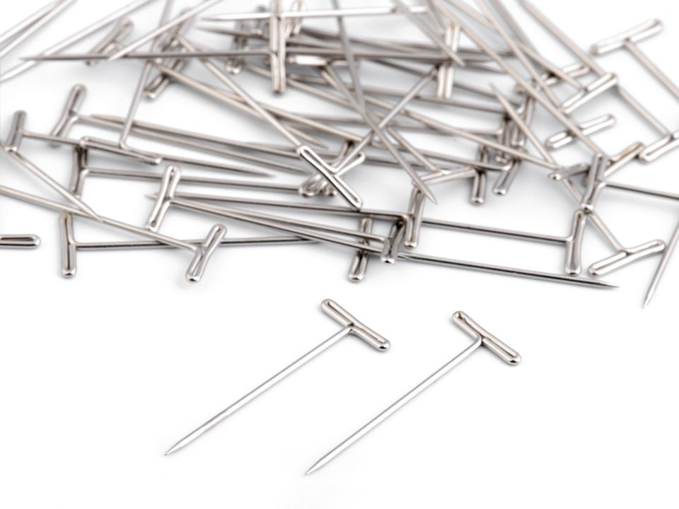 Celokovové špendlíky ve tvaru T využijete k napínání krajek a úpletů. Své využití naleznou i v oblasti aranžérské či floristické.