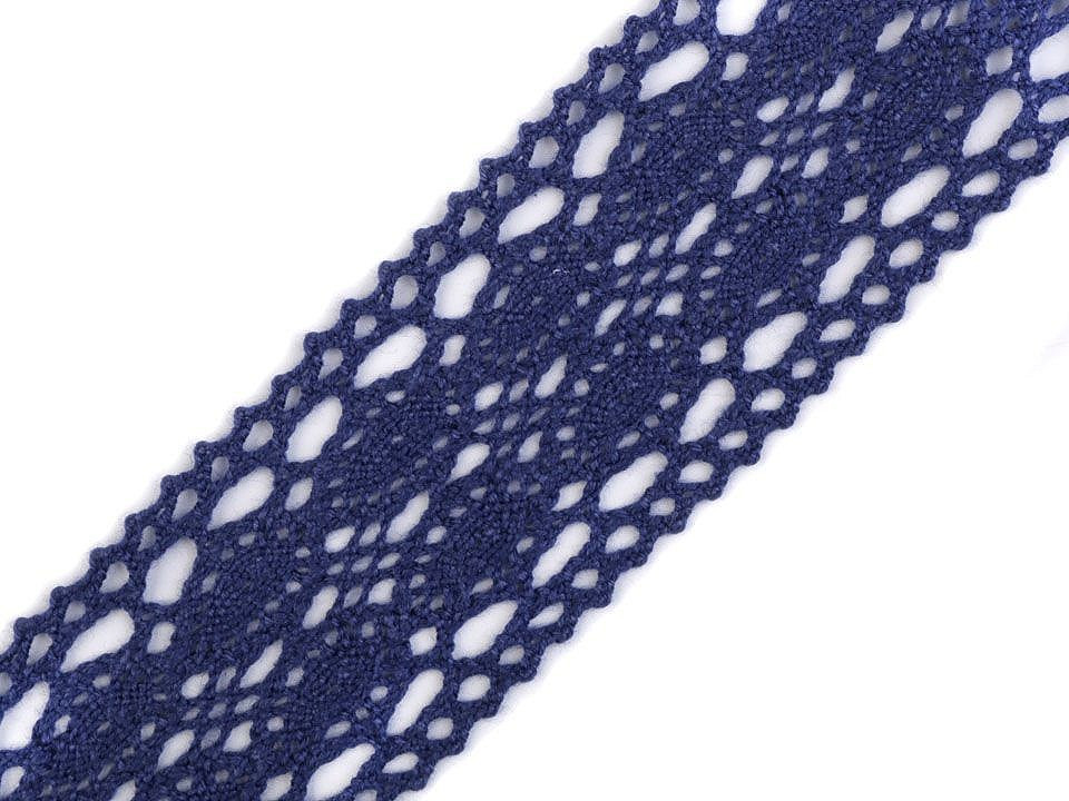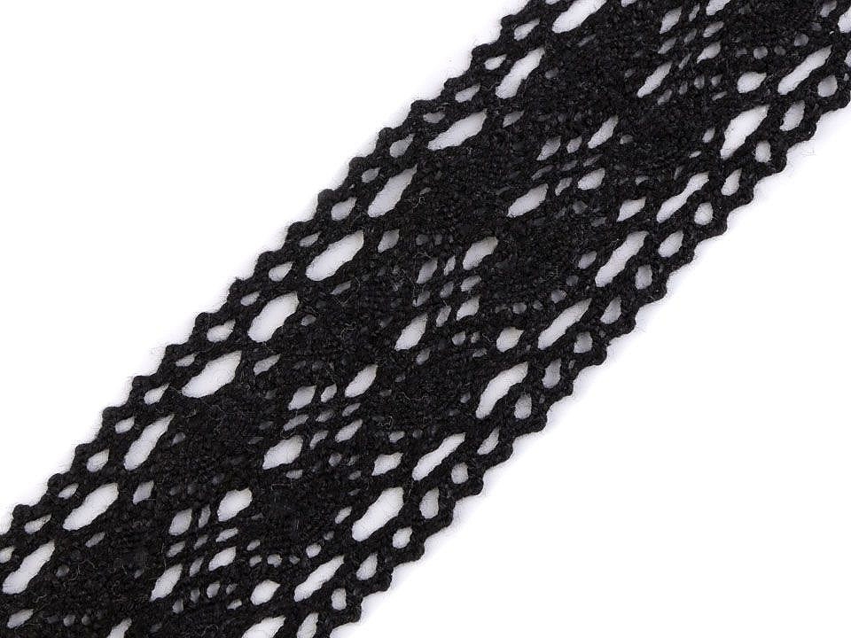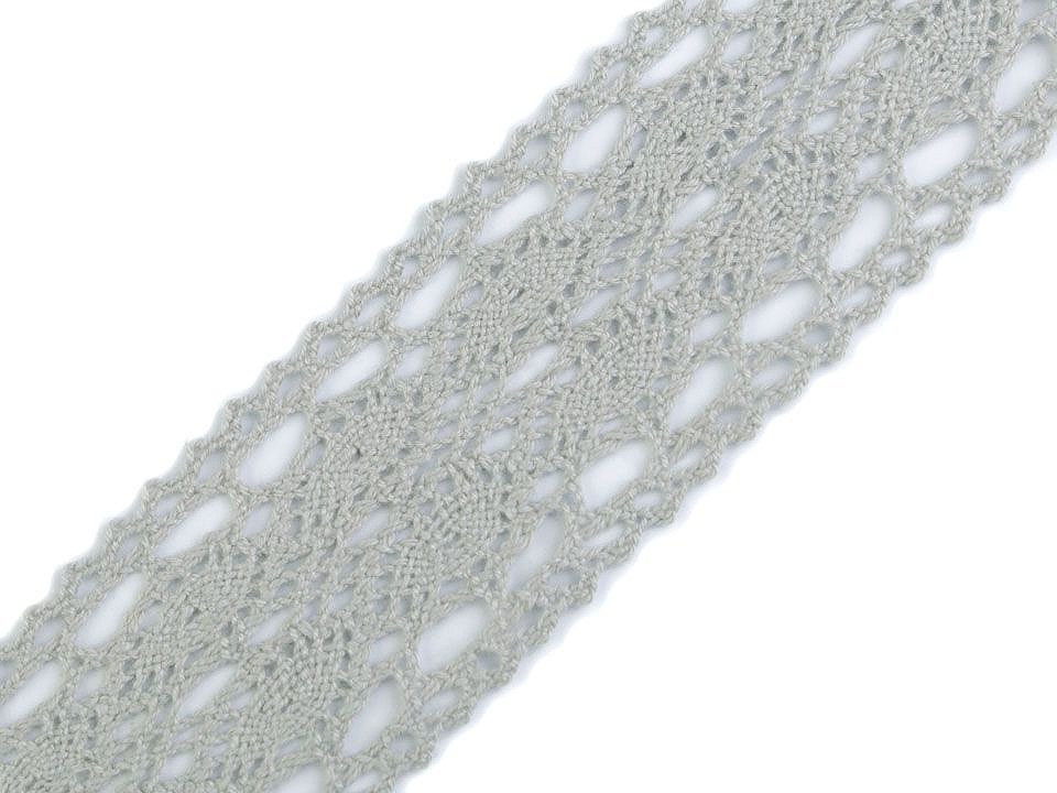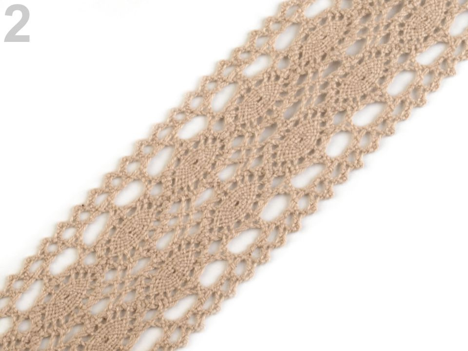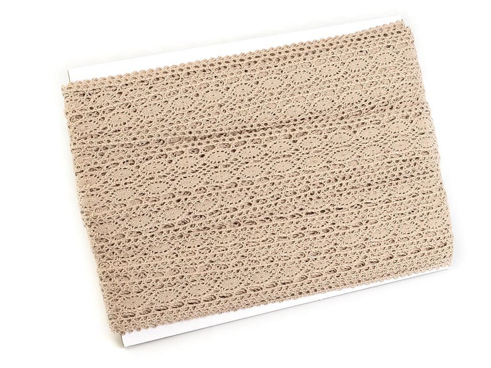 Bavlněná paličkovaná krajka se zajímavým vzorem má okraje zakončené očky. Doporučujeme ji žehlit přes tkaninu.