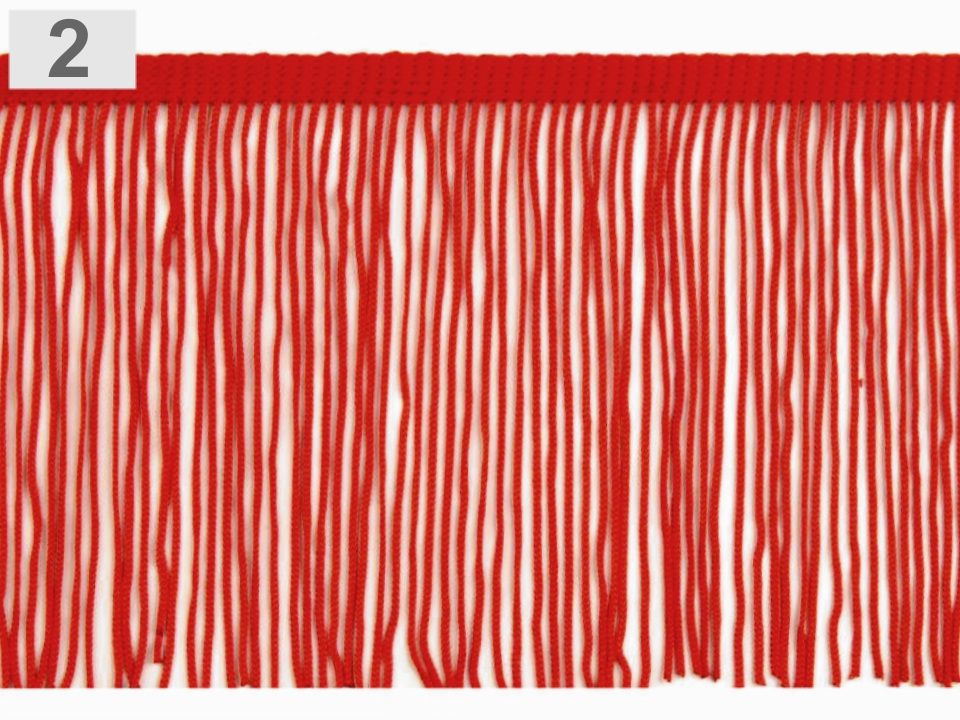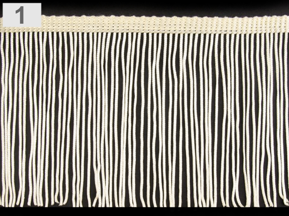 Ozdobné třásně jsou jemné a pevné. Vespod jsou spojeny fixační nití, která slouží pouze k tomu, aby nedošlo k zamotání. Před použitím nit odstřihněte a odstraňte.