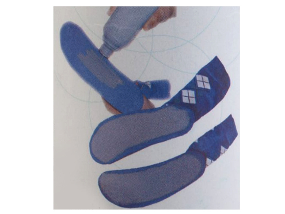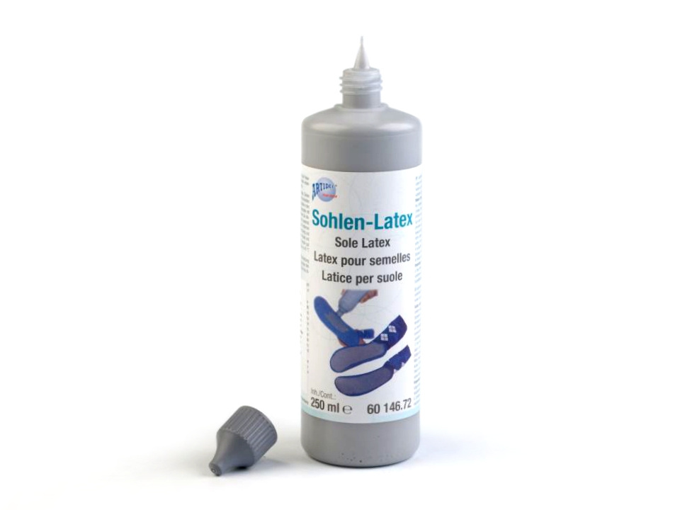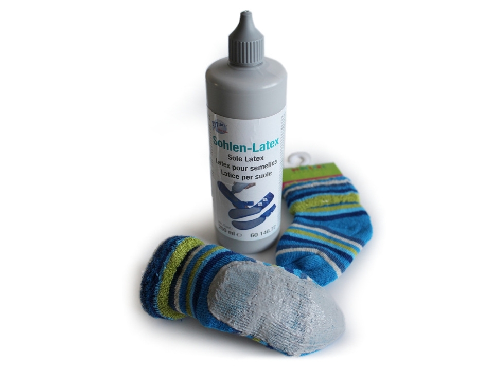 Návod k použití: položte nohu na pevnou lepenku. Obtáhněte kontury chodidla fixem a otisk vystřihněte nůžkami. Vsuňte lepenku do vybrané ponožky nebo punčochy a její celou spodní stranu potřete latexovou emulzí pomocí měkkého štětce. Po zaschnutí první vrstvy zopakujte ještě dvakrát. Doba schnutí je 10-12 hodin. Poté vyjměte lepenku, bota s vlastnoručně vyrobenou podrážkou je hotová.