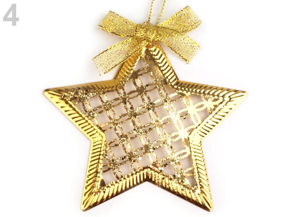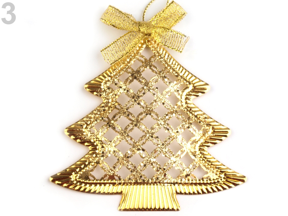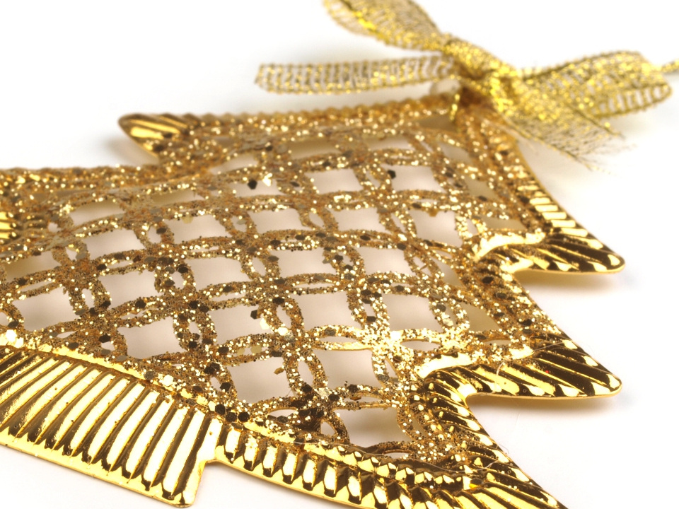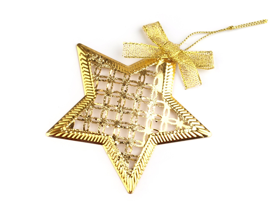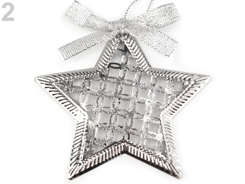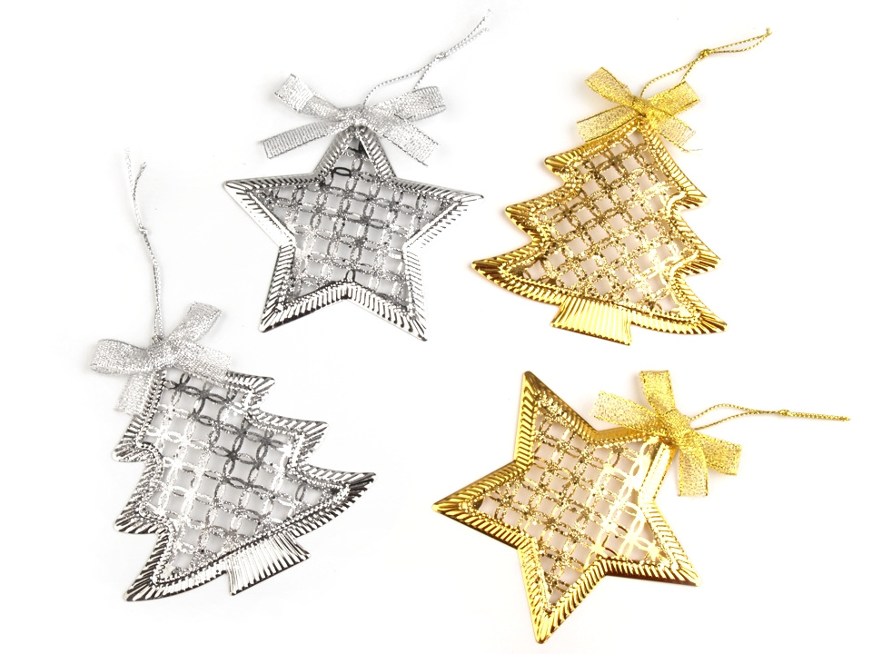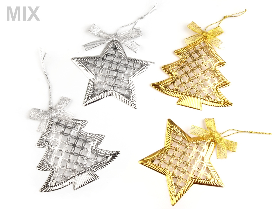 Kovové dekorace vám doladí domov během zimních svátků. Dekorace ve tvaru stromku a hvězdy jsou zdobené výřezy, mašlí a třpytivými glitry.