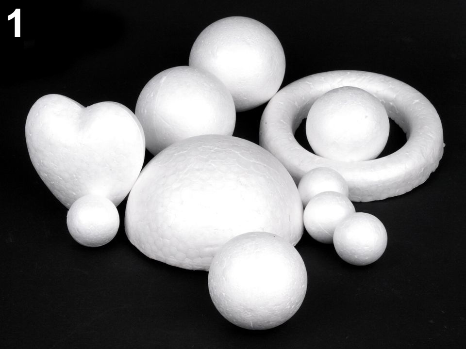 Celoroční sada č. 1 obsahuje: 2 ks koule Ø65mm, 1 ks srdce Ø100 mm, 1 ks věnec Ø150 mm, 1 ks polokoule Ø130 mm, 4 ks koule Ø40 mm, 2 ks koule Ø75 mm.