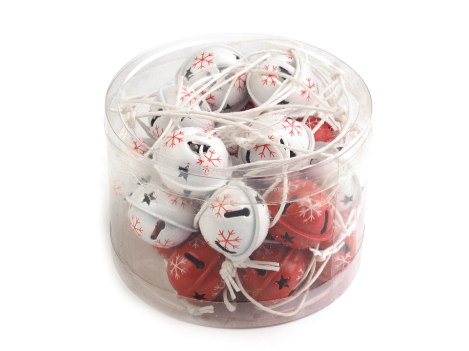 Kovové rolničky jsou nejvíce žádané v období vánočních svátků. Rolničky jsou ozdobené potiskem sněhových vloček a díky poutku ze šňůry je může pohodlně zavěsit.