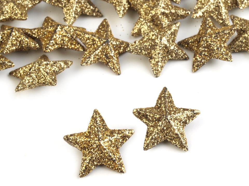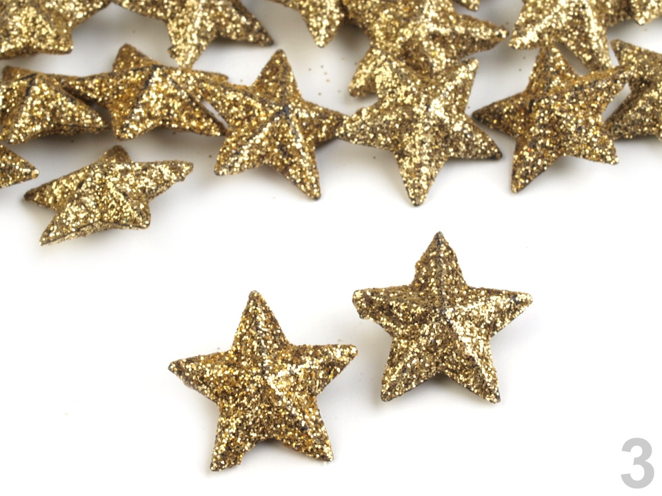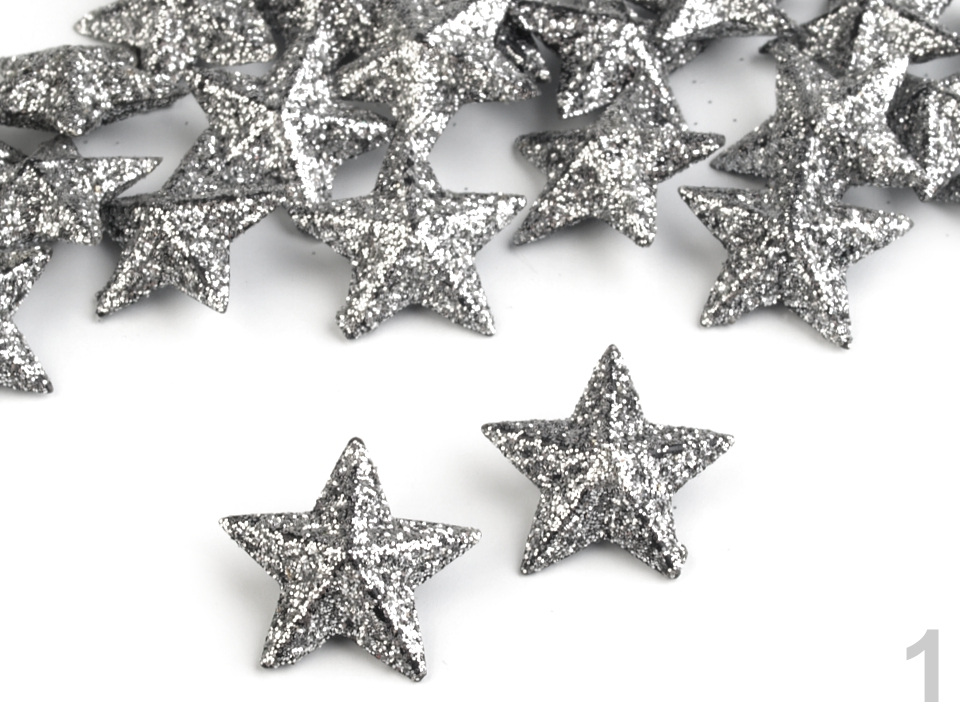 Dekorační hvězdy se nádherně třpytí díky glitrům, které je zdobí. Jsou oboustranné.