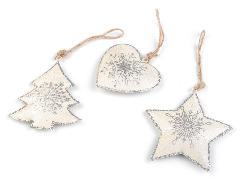 Kovová dekorace ve vintage stylu vám doma vykouzlí neopakovatelnou zimní atmosféru. Díky třpytivým stříbrným glitrům působí luxusně. Vynikne na vánočním stromku, dekoračním věnci, v zimních truhlících apod. Má poutko, za které ji můžete zavěsit na dveře, do oken nebo volně do prostoru.