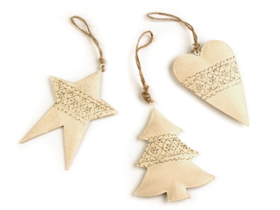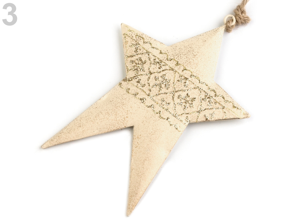 Kovová vánoční dekorace vám doma vykouzlí neopakovatelnou zimní atmosféru. Díky třpytivým glitrům působí luxusně. Vynikne na vánočním stromku, dekoračním věnci, v zimních truhlících apod. Má poutko, za které ji můžete zavěsit na dveře, do oken nebo volně do prostoru.