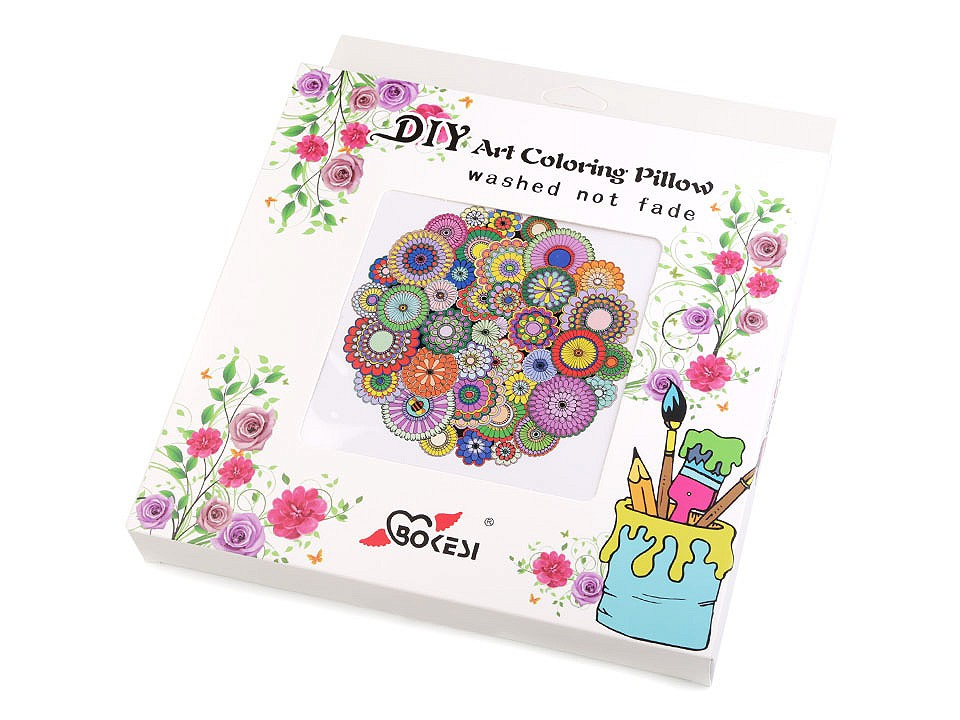 Pomocí přiložených barev, palety a štětců si můžete polštář vybarvit podle svých představ nebo podle obrázku na krabičce.