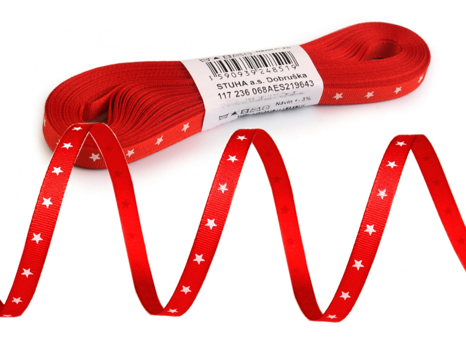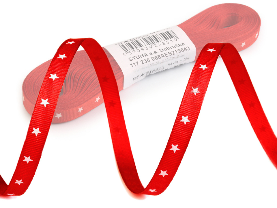 Stuha se vzorem hvězd je vhodná k dekoračním účelům.