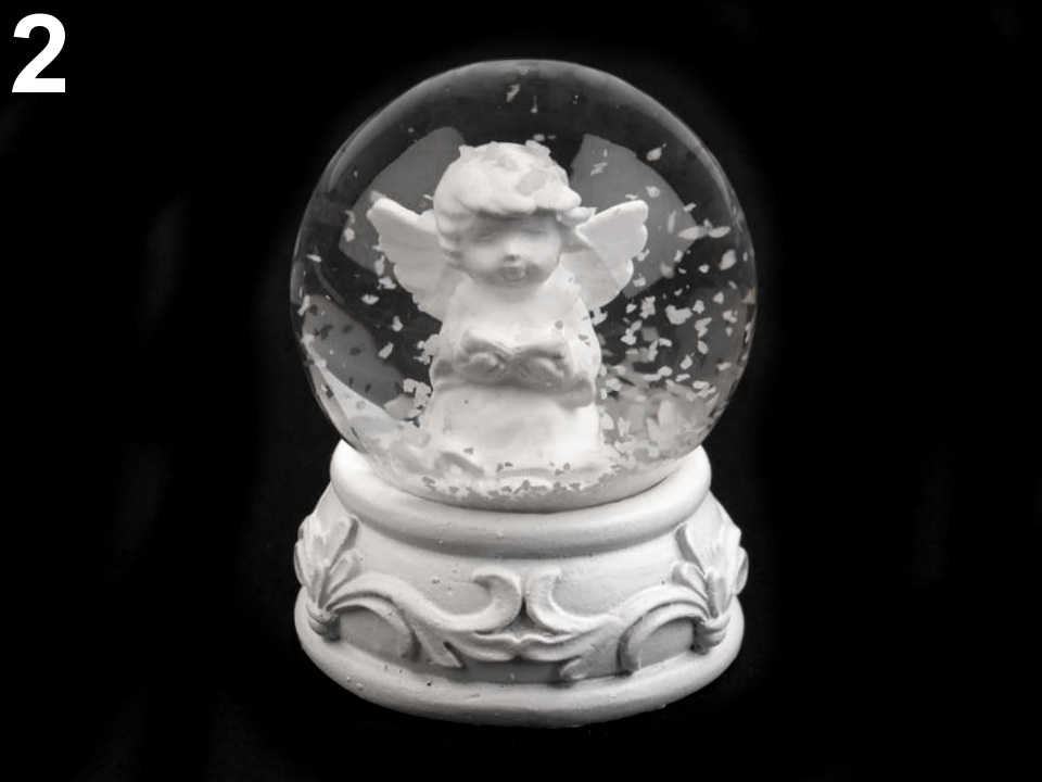 Andělské sněžítko je stylovou dekorací k období vánočních svátků. Zatřepte s ním a nechte se unášet jemným sněžením, které má i uklidňující efekt. Dekoraci můžete využít také jako těžítko, které zkrášlí váš stůl. Sněžítko má pevný podstavec v antickém stylu.