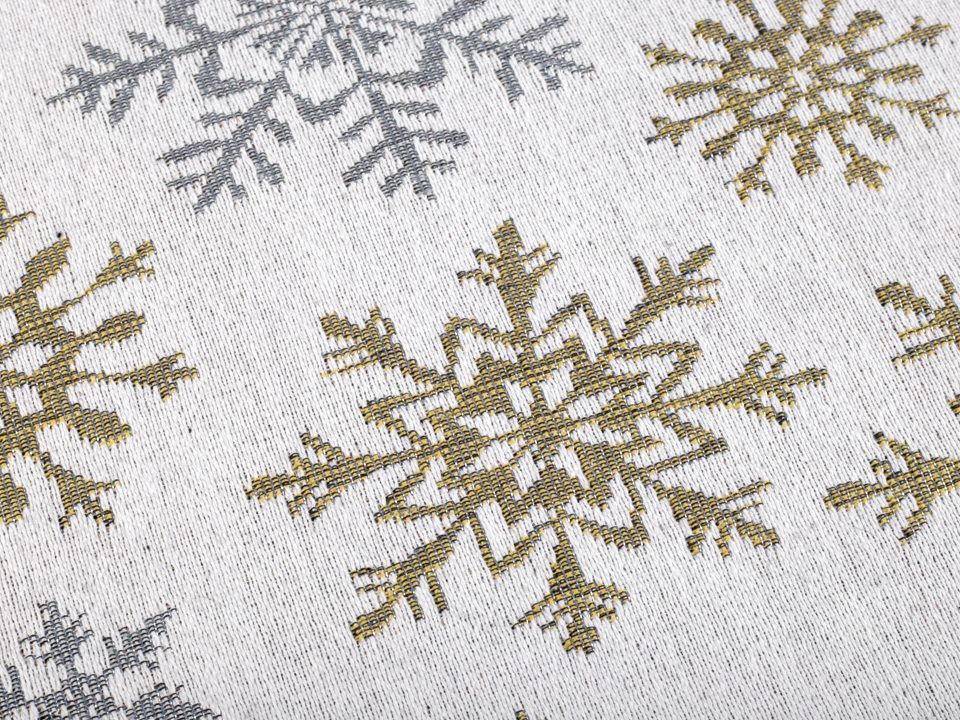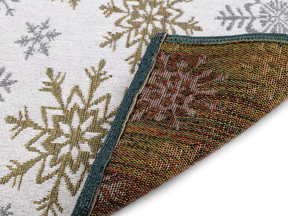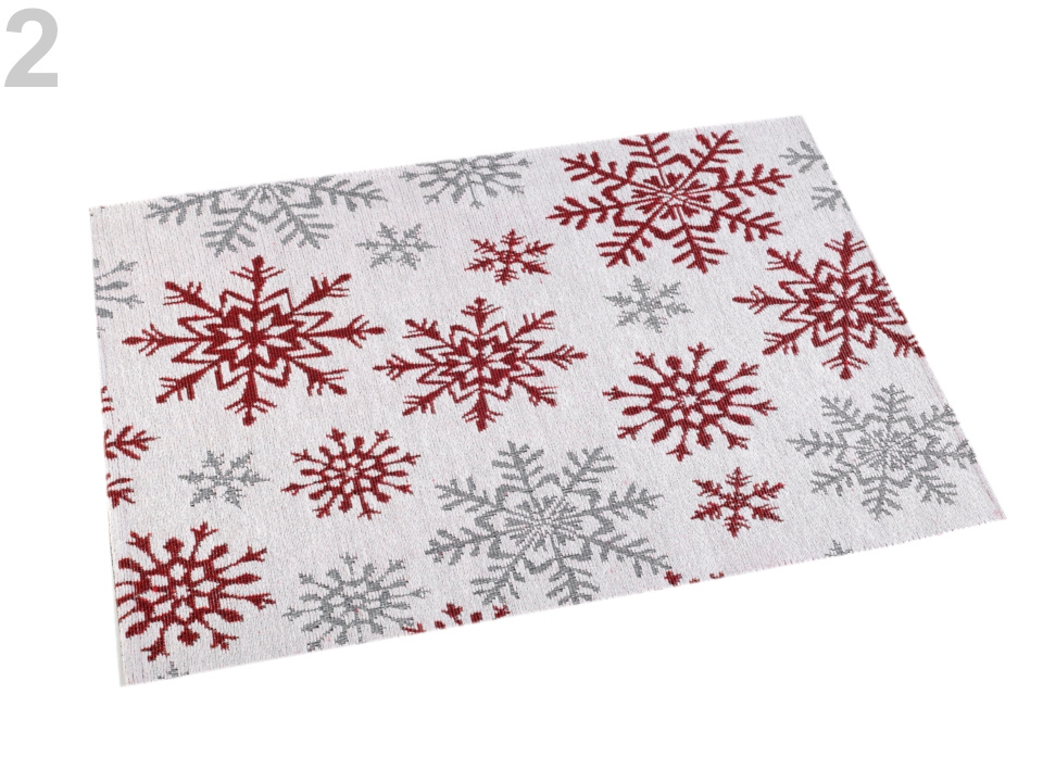 Tkané prostírání bude dominantou vašeho svátečního stolu. Zdobí ho sněhové vločky různých tvarů a velikostí. Prostírání ochrání stůl proti poškrábání. Můžete ho také použít jako menší dečku na jiné plochy jako jsou komody, lavice apod. Skvěle ozdobí vaši kuchyni doma i na chalupě. Oceníte u něj i jeho kvalitní materiál.