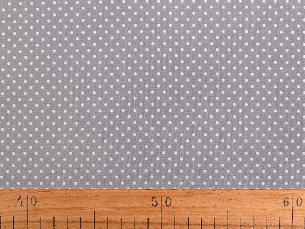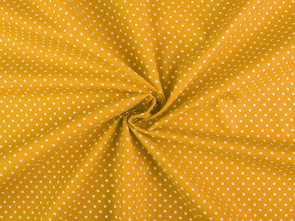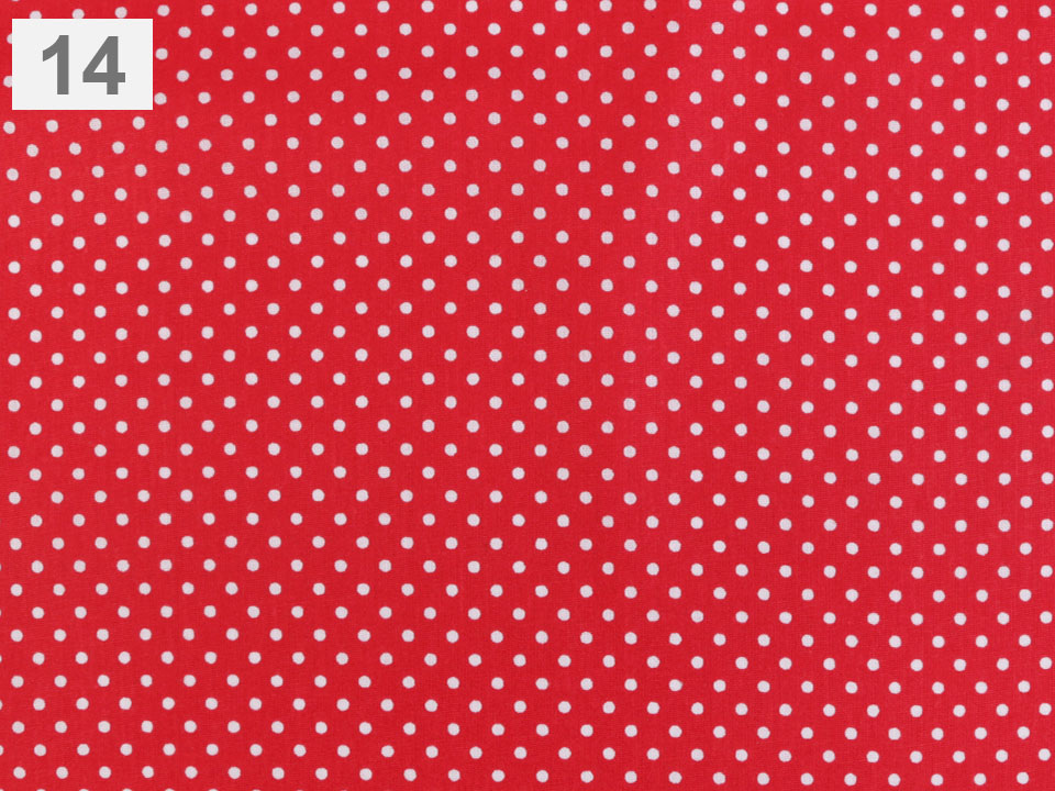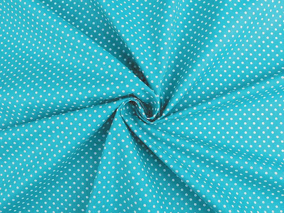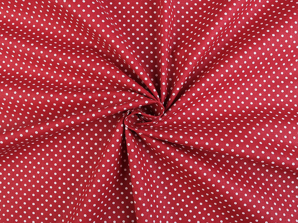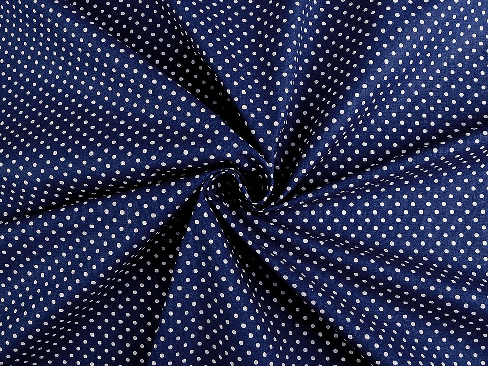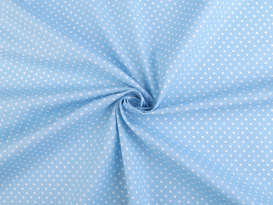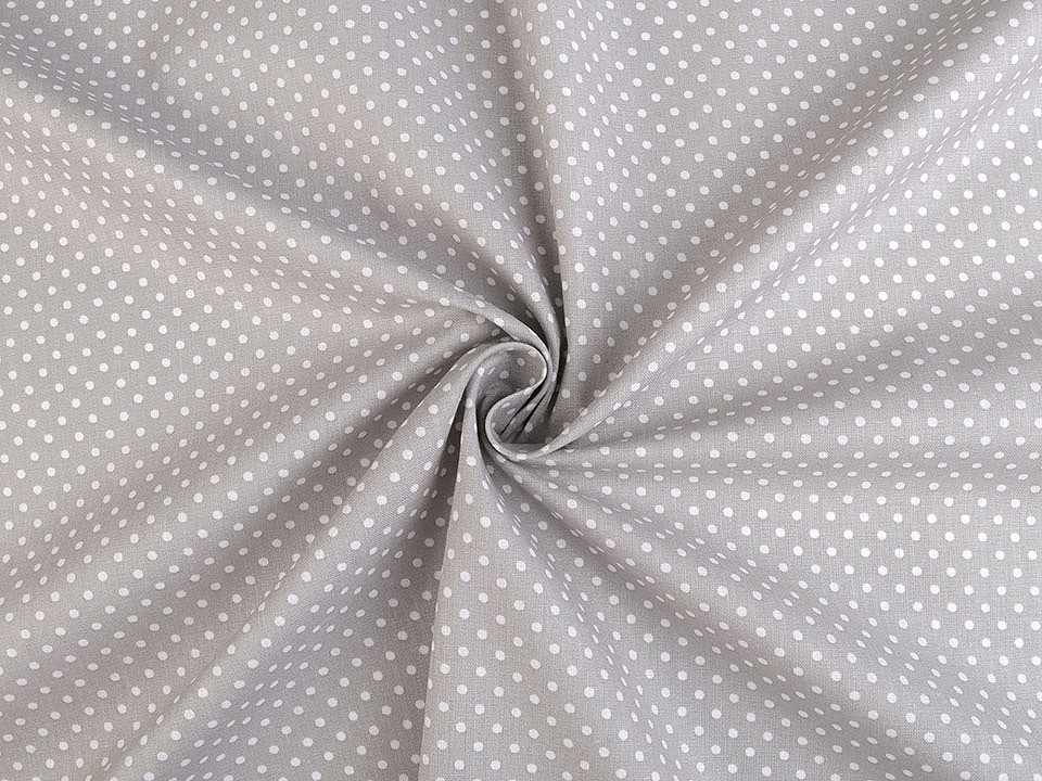 Bavlněnou látku zdobí potisk drobných puntíků.