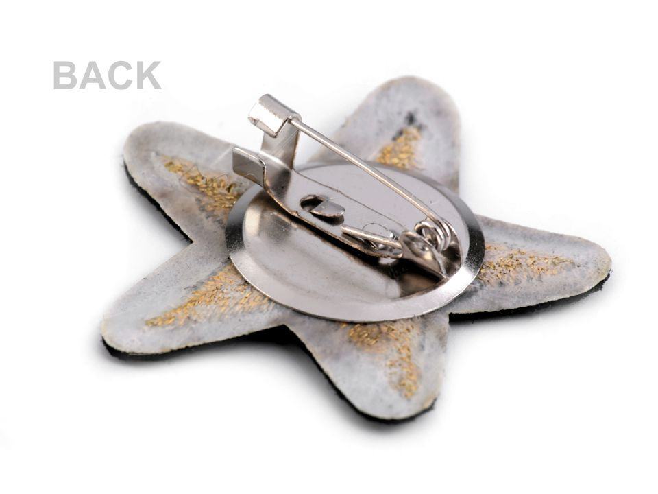 Má detailní strojovou výšivku. Na zadní straně je brožový špendlík dlouhý 1,5 cm.