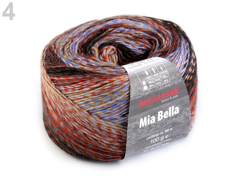 Pletací příze značky Mia bella je kvalitní, lehká a příjemná na dotek. Melírovaný efekt dodá barevnou atraktivnost každému vašemu výrobku.