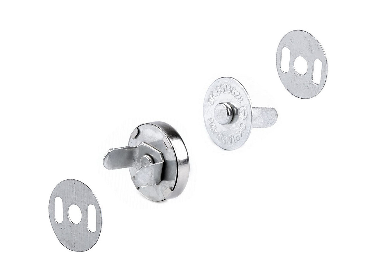 Magnetické zapínání se používá na uzavírání tašek, košíků na šití, peněženek nebo na klop kabelek. Jedna sada se skládá ze 4 částí - 2 protikusů a 2 podložek.