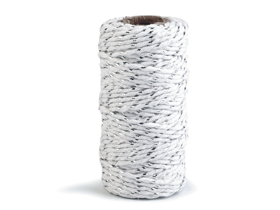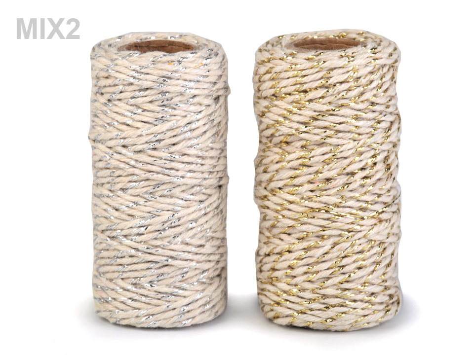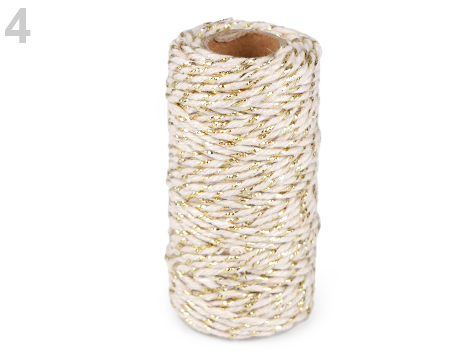 Bavlněná šňůra je velice pevná, spletená z osmi tenkých nití. Zdobí ji třpytivý lurex.