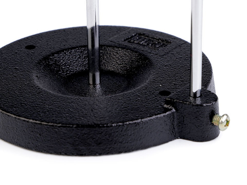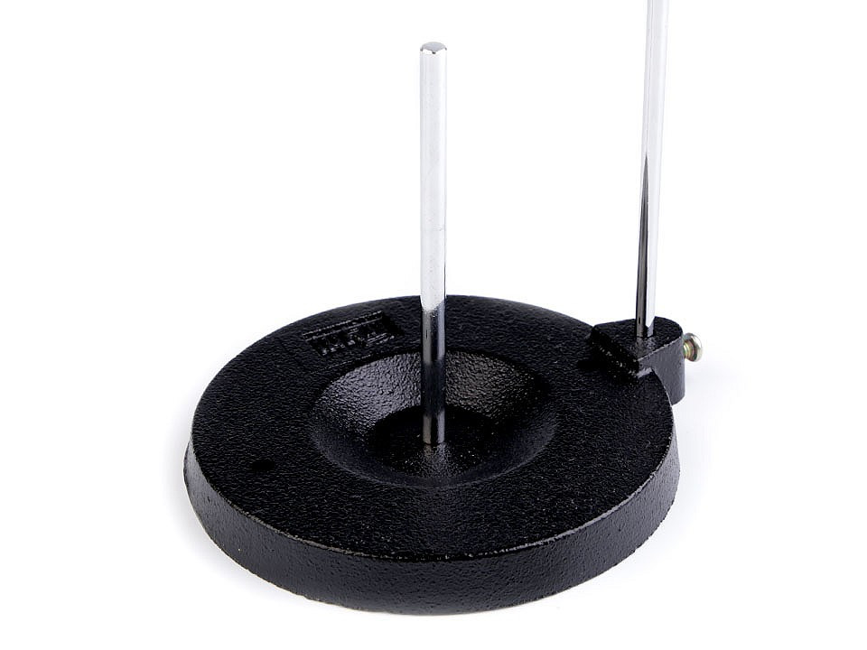 Těžký a stabilní kovový stojan vám poslouží jako doplněk k šicímu stroji. Je určený pro odvíjení nití z velkých cívek, které se nevejdou do držáku stroje - jednoduše ho postavíte vedle stroje. Vhodný pro všechny typy šicích strojů.